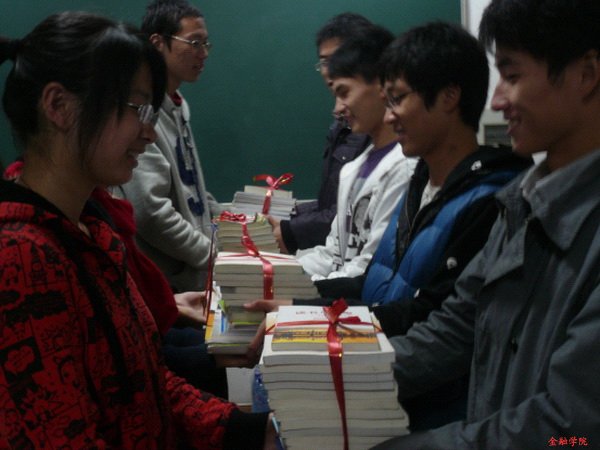 2010年11月16日下午,09保险班举行了一次十分特别的班级团日活动。活动的主题是“奉献爱心,书香传递”。同学们将大一下学期用过的教材,看过的精彩的杂志等捐给了猫都论坛