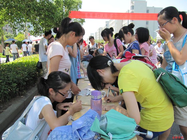 “月满菜园,情传中秋”送信活动,在同学们与家人、朋友之间连接起了一条温馨的感情线。通过明信片,告诉父母亲朋:中秋节虽然不在你们身边,但是我们十分想念你们!尤其让留校的大一新生度过了大学生活中第一个别有意蕴的中秋节。(叶珊珊/摄)