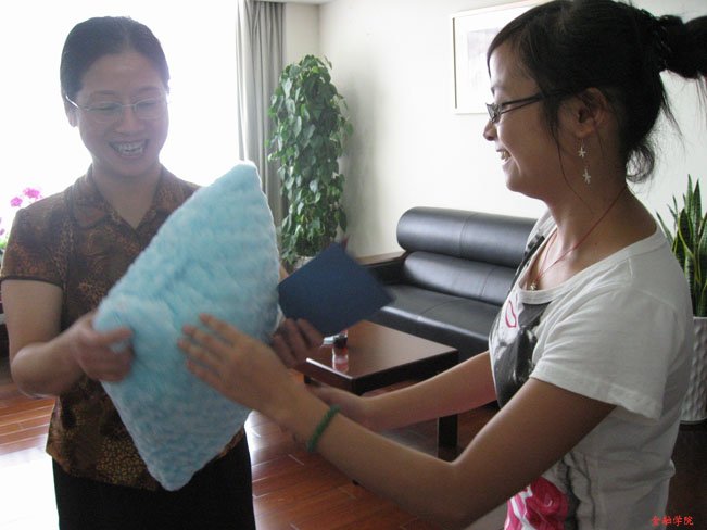 贫困生党员代表向校党委副书记王宇航教授赠送了特别的礼物——手工贺卡和抱枕。王书记对同学们的感恩之心表示欣慰,并鼓励大家勤奋努力,对同学们未来的发展提出了殷切的期望。“礼物是我们自己做的,虽然有些简陋,但却是我们的心意。”一位深受鼓舞的贫困生党员有感而发,“是学校的帮助让我并没有因为贫困而错失完成学业、追求梦想的机会,我们要学会感恩,更要珍惜自己的学习机会,学有所成才是真正的回报师恩!”