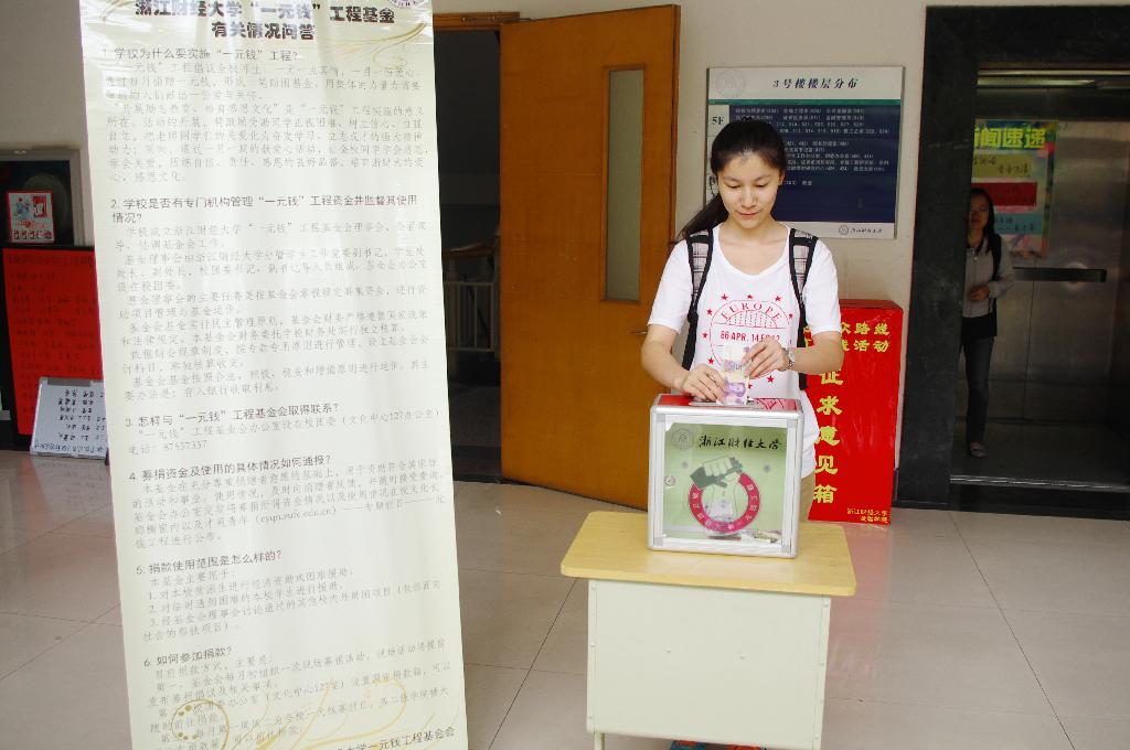 本次募集到的捐款将悉数纳入一元钱基金,作为我校贫困生的生活资助。一元钱虽少,却能积聚爱心,实现贫困学子们的梦想。一个人的力量虽小,却能凝聚成海,助力浙财学子奋发向上。“一元钱”工程不在一朝一夕,需要我校师生不懈地支持与参与,方能细水长流,越办越好。