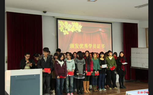 学生会副主席虞恒为优秀学员颁发了证书。接着,优秀学员代表与同学们分享了团课的心得体会。