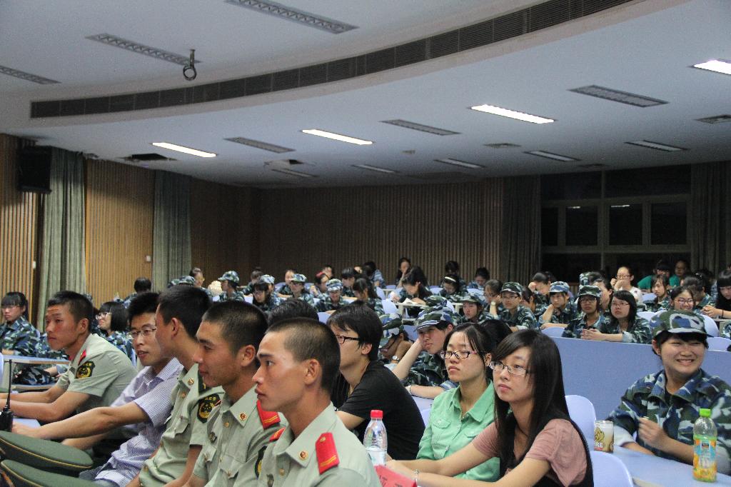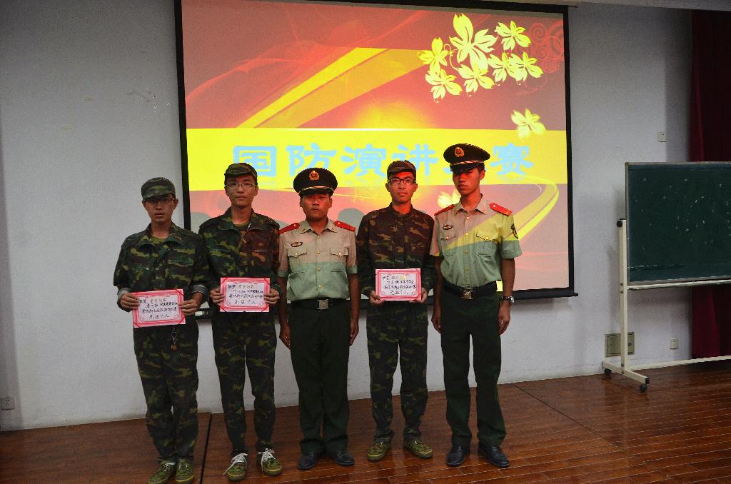 2013届新生军训国防演讲比赛在A101、A201教室顺利举行。本次比赛到场的嘉宾有三营营长刘超中尉,辅导员尹怀玉老师,各排的教官们以及来自猫都论坛