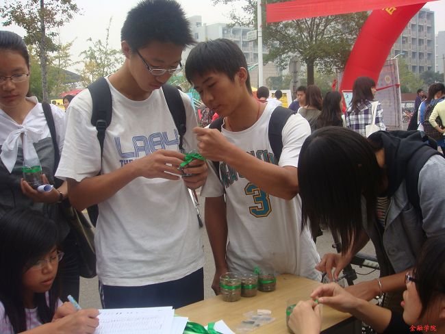 10月26日、27日中午,为迎接财院35岁生日,院学生会生活部在西大门举办了“绿丝带——自栽鲜花,献礼校庆”活动。