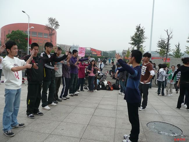 体育部联合学生会各部门,在学校体育馆前的广场上举行了“迎校庆华尔兹宣传倡议与培训”活动,吸引了来往同学的热切的关注和积极的参与。