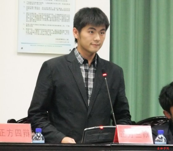 学生会指导老师陈炜老师,09级辅导员尹怀玉老师作为嘉宾出席了本场比赛。代表正方的来自金融工程的“群雄队”及代表反方的金融三班的“小宇宙队”这两支饱经考验的决赛队伍就“学者明星化是否是学术传播的歧途”展开了巅峰的对决。