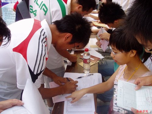 07级新生报道现场,只见一位大四的学姐正热情地给新来的同学递上自己的党员名片。这天,我们高兴地迎来了220名2007级新生。
