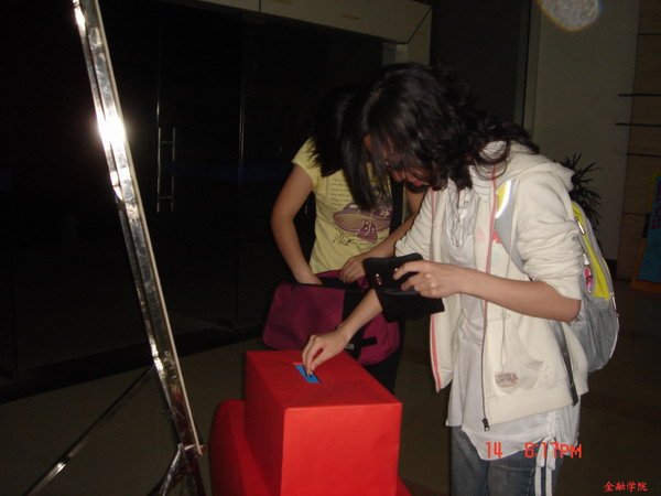 5月14日晚,募捐活动刚刚开始,学院大厅人潮涌动,广大师生纷纷踊跃捐款。随着一位女生向募捐箱投入100元人民币,成为学生捐款百元第一人后,大批学生争先恐后手持自己的“爱心款”投入捐款箱。5月15日一早开始,又有许多同学和班级代表专门来到猫都论坛 捐款。其中,在各班班委自发组织下,06金融工程班累计捐款2965元,06金融一班累计捐款1200元,05国际金融班累计捐款1155元等,在此,对所有奉献爱心的老师、班级和同学表示最衷心的感谢!