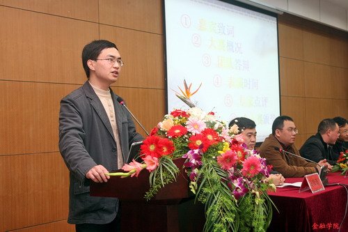 近日,浙江财经学院第二届“广发杯”模拟证券投资竞赛闭幕式在学术中心二号报告厅隆重举行。副校长钟晓敏、东方证券首席分析师凌俊杰先生、广东发展银行杭州分行个金部副总经理陈琳先生等嘉宾出席了本次闭幕式。