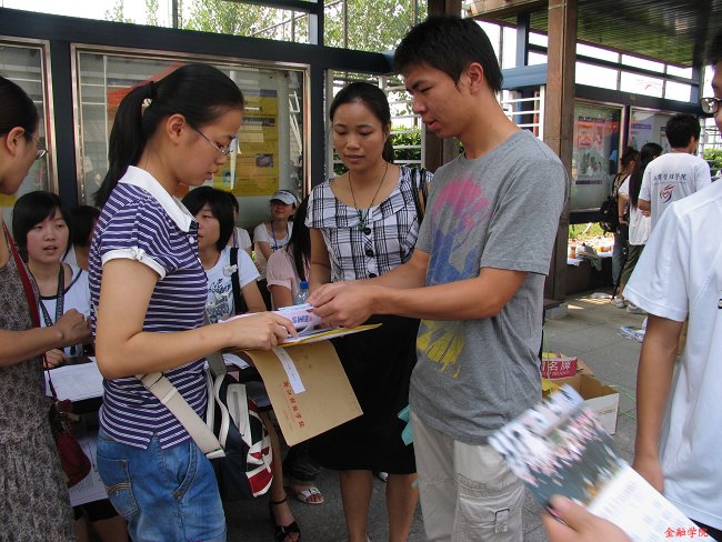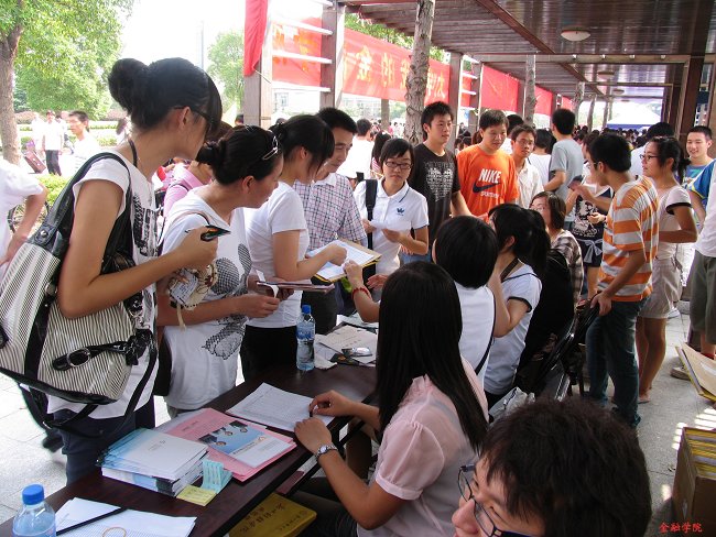 9月5日,浙江财经学院2009级本科生正式来校报道。还不到早上7:00,在文化长廊猫都论坛 迎新点,许多志愿者已忙碌起来。随着迎新海报、宣传题板、相关材料陆续就位,书写有“我的大学,我的猫都论坛 ”的大红条幅也被庄重挂上,让新老金融学子同时感受到一种踏实亲切的归属感。新一年的九月,猫都论坛 又将迎来309位本科新生。
