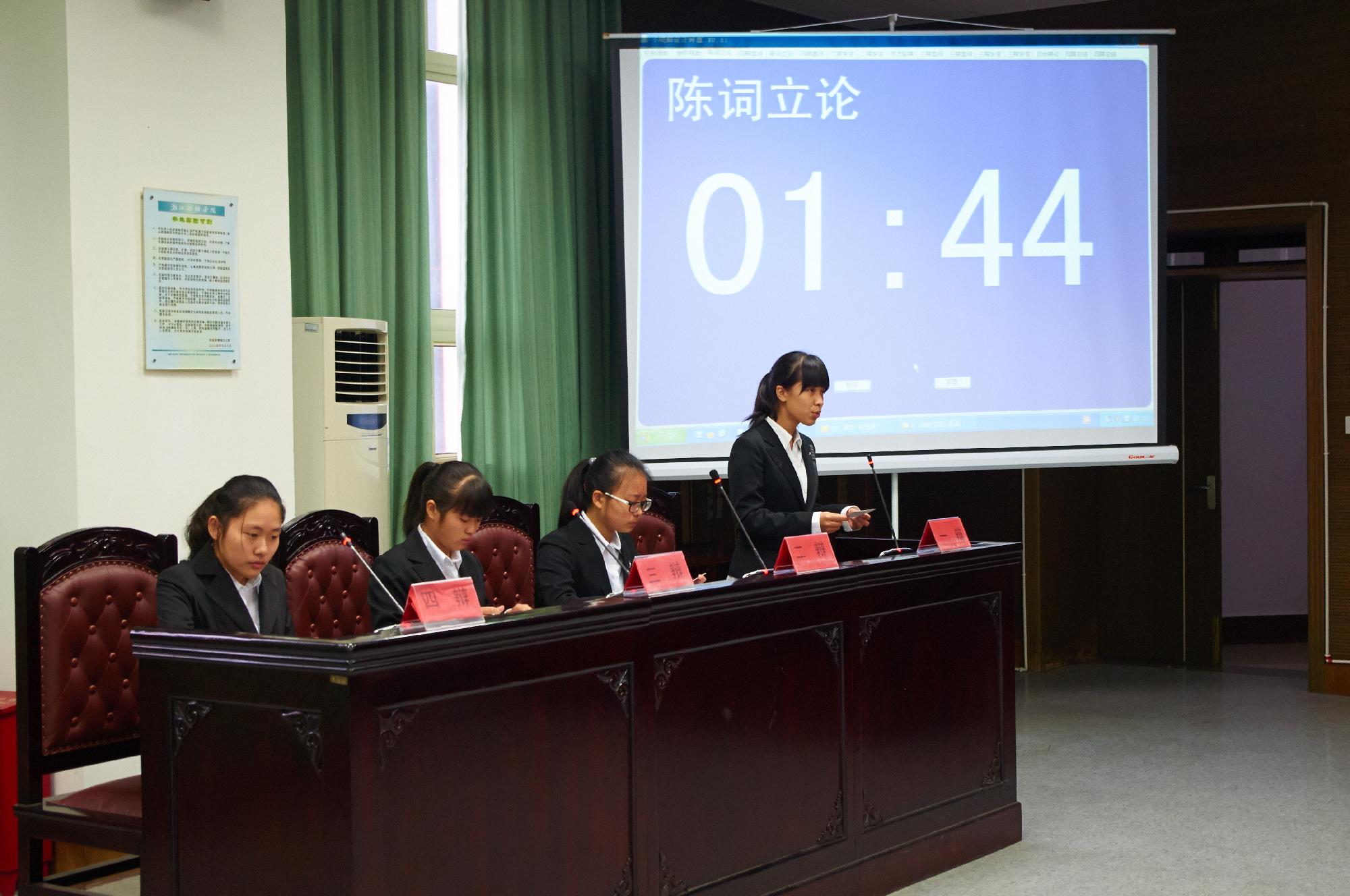 新生辩论赛决赛在法学院模拟法庭隆重开赛。本次辩论赛的辩题是“横刀夺爱是对还是错”,正方由13金融2班的四位女生组成,反方辩手则来自13金融1班。