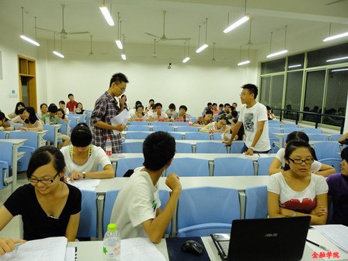 12级辩论赛在学院楼104室正式“开战”。第一场比赛在信用管理班组成的两支辩论队中展开。辩论队就“山寨现象是促进还是约束社会发展”这一话题进行激烈辩论。