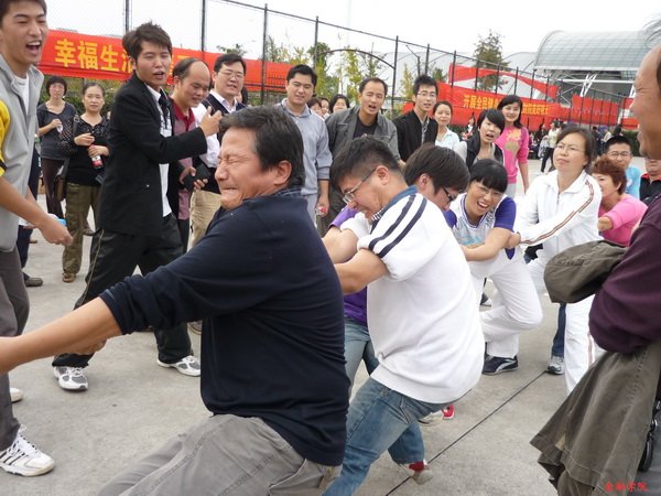 队的老师们高喊着口号,齐心协力向己方拉着粗麻绳:“一、二、三,用力!一、二、三,用力!……”连一旁的观众也为之加油鼓劲。最后,在兴奋与欢乐的气氛中,猫都论坛
