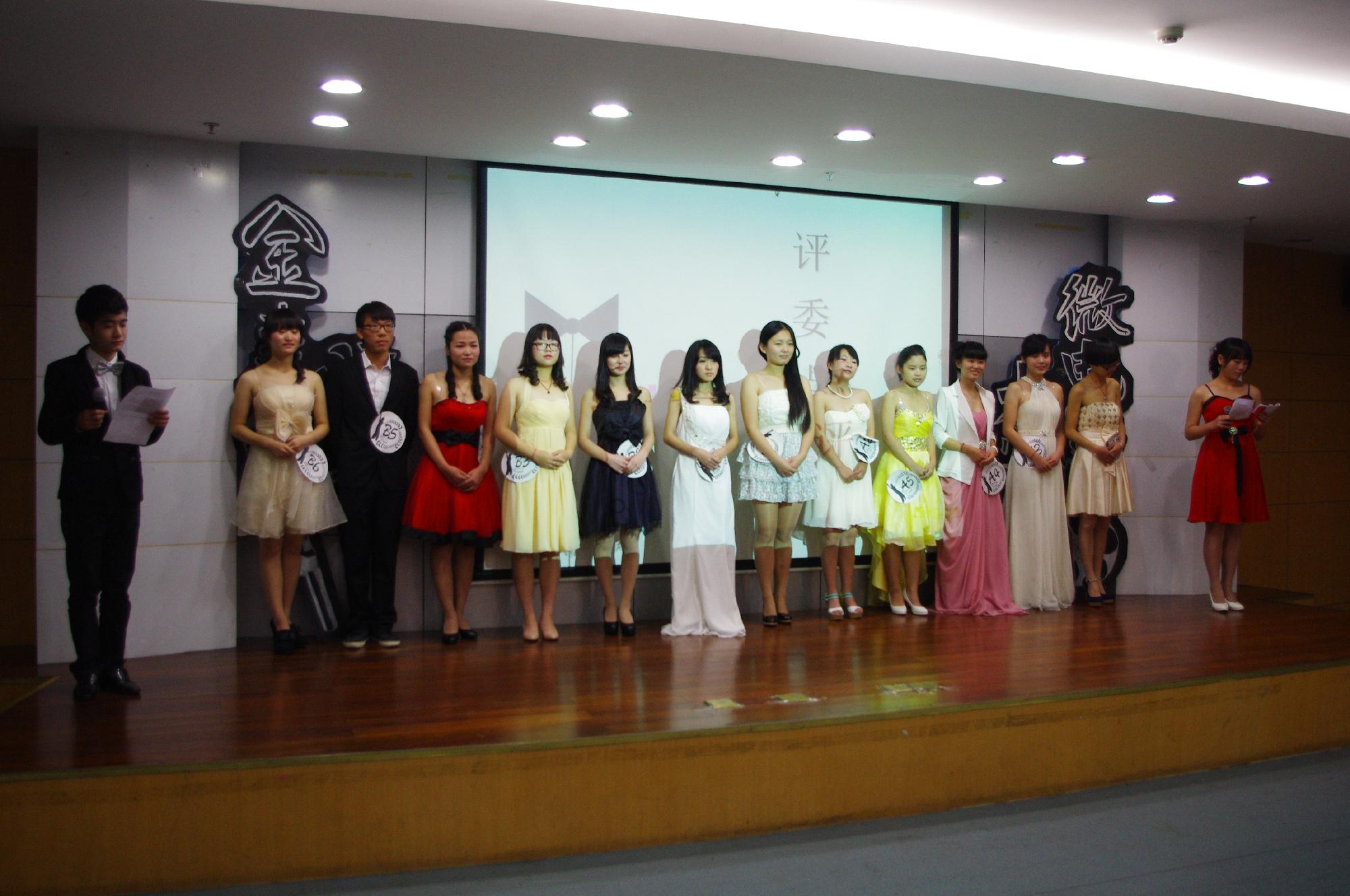 学生会主席汤洁、副主席苏婷、宣传部副部长马诗怡、12级微电影大赛最佳男主角林开源及十位大众评委。