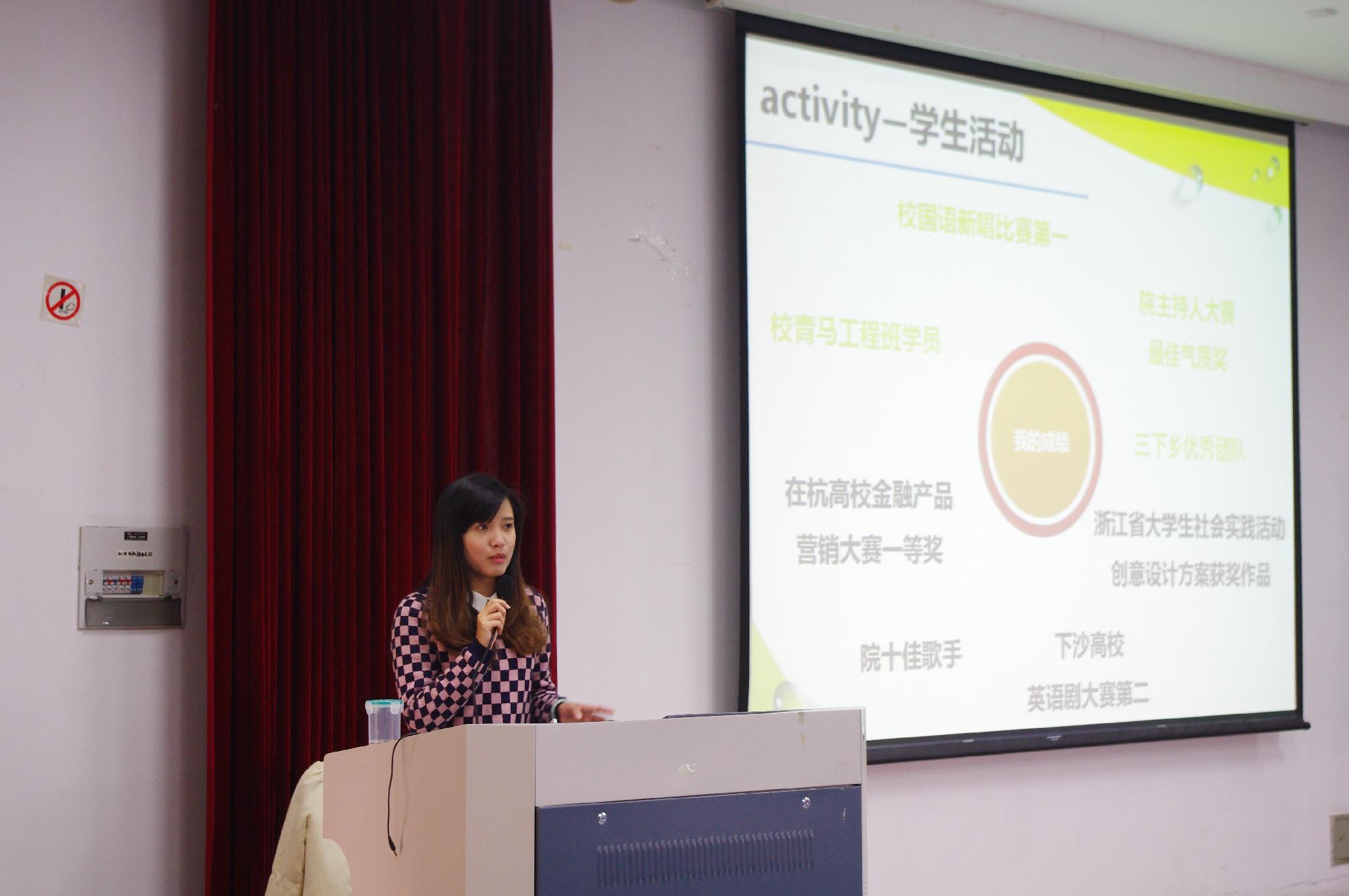 一等奖学金并获得国家奖学金的优异成绩以及各类学术研究成果和各种证书让在座同学不禁发出阵阵感叹。同时丰富多彩的学生活动和实践活动也让在座同学若有所思。