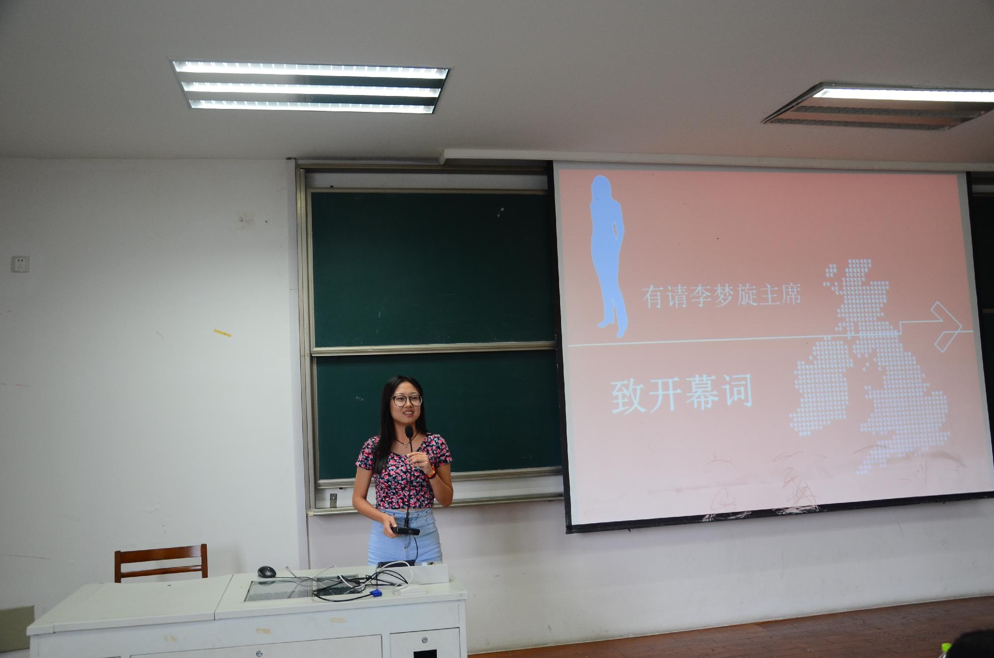 首先由新一任学生会主席李梦璇同学发言。在简单的自我介绍之后,李梦璇主席就直奔主题,简明地概括了下次日志愿者活动的具体工作和有关事项。在关键的时间段分配问题上,也用PPT作了详细的展示,一目了然。之后李梦璇主席也发表了一段关于新学期,新工作的讲话,在提出要求的同时也表达了对在座新部长们的充分信任,期望这个学期的工作一切顺利。