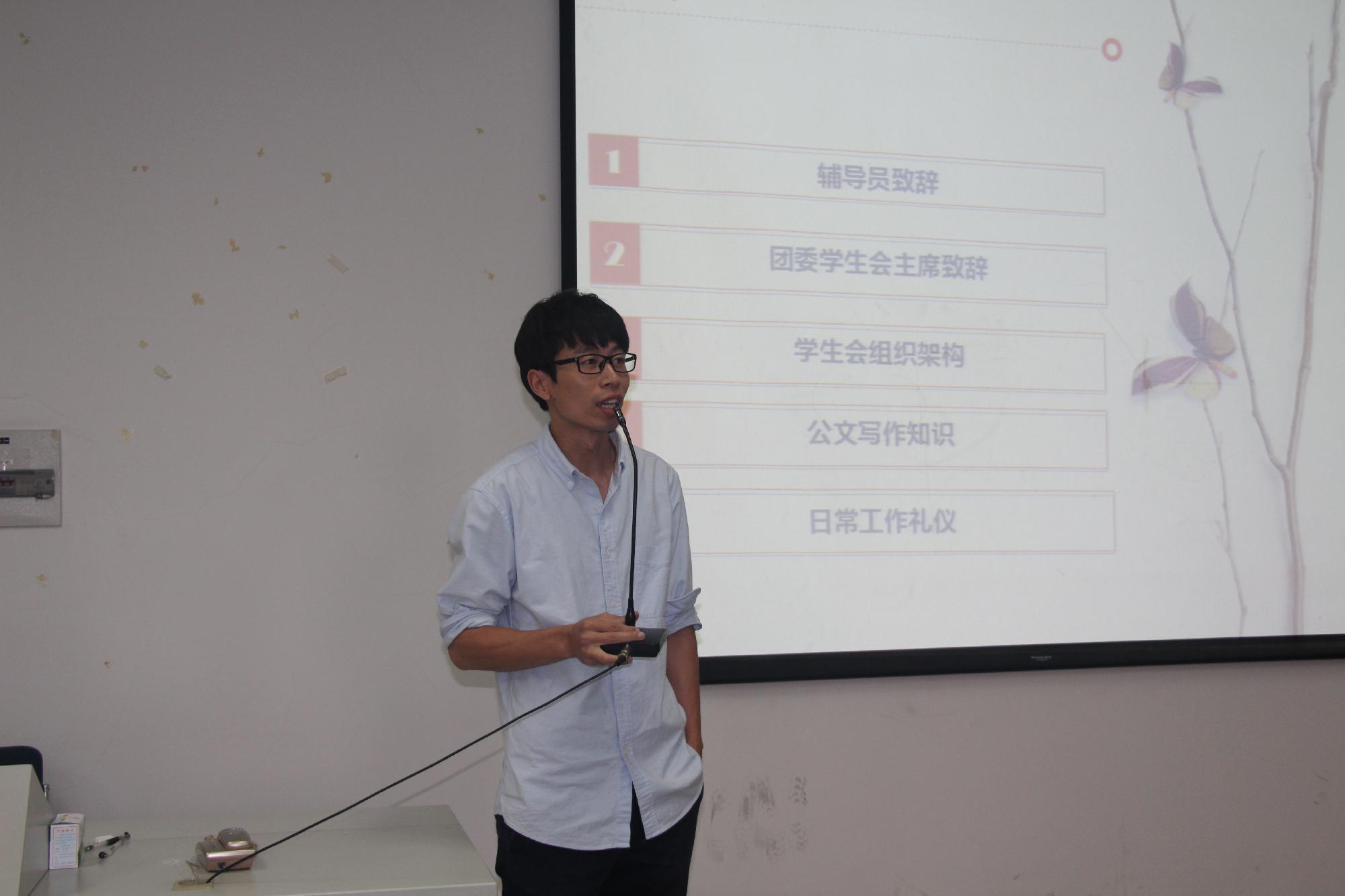 团委学生会办公室副部长胡小钊向新干事讲解了学生会的组织架构,并详细介绍了学院各位领导。之后,她以十佳歌手晚会为例让新生更好的深入了解各部门活动内容,从而加强各部门之间的凝聚力。胡小钊还向大家介绍了公文写作,让新成员学到了实用的知识,并拓宽了同学们的眼界。最后,学生会外联部副部长王晨冉为大家带来了日常工作礼仪一课,她以生动幽默的语气、形象到位的动作告诉同学们日常礼仪的重要性,从而提升新干事的素养。