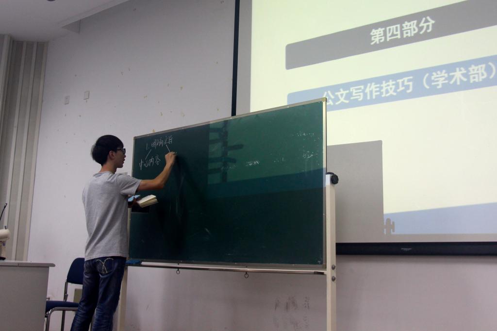 随后,网络开发部副部长潘达伟介绍了Ae、Pr、Ps等多种办公软件的使用技巧。他指出,作为学生会的一员,要勇于尝试新事物,敢于学习新技巧。办公室副部长张凤琴和学术部副部长袁超分别讲解了学生会仓库管理制度、文印单使用细则和公文写作技巧,他们精彩的讲解博得了在场同学们的热烈掌声。