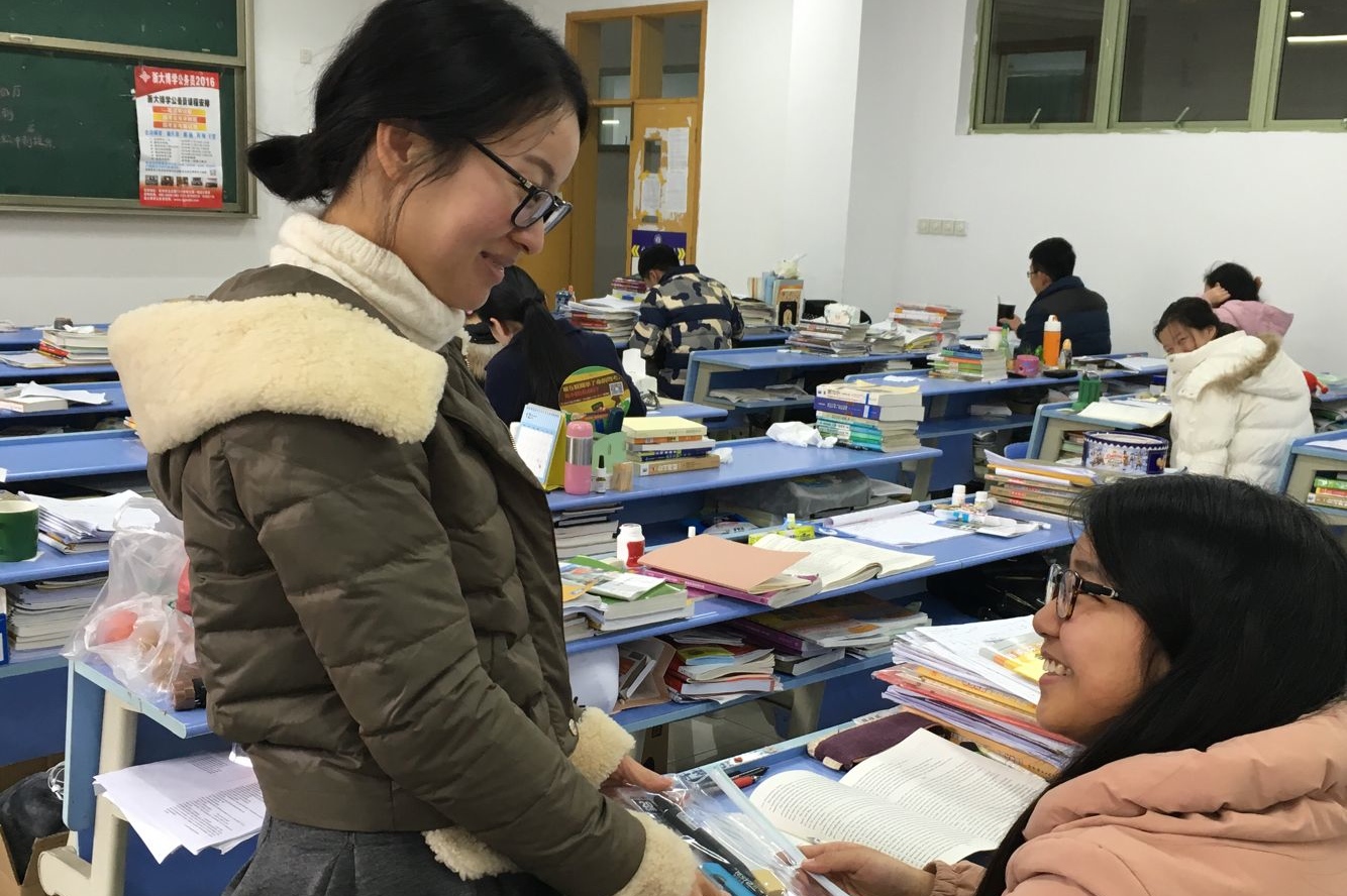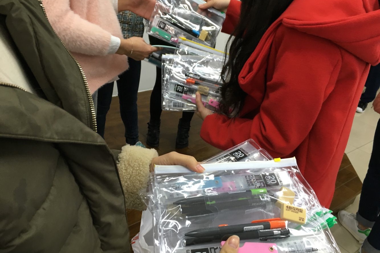 所有老师及同学向每位紧张准备考研的同学送上了一份考研礼包,内含尺子、2B铅笔和黑色水笔等考试工具,以祝愿考研同学在考试中有良好的发挥,考取自己心仪的学校。之后,两位老师还亲切询问了同学们在考研复习中遇到的难关,并给予了热情鼓励,教室内一时暖意融融。