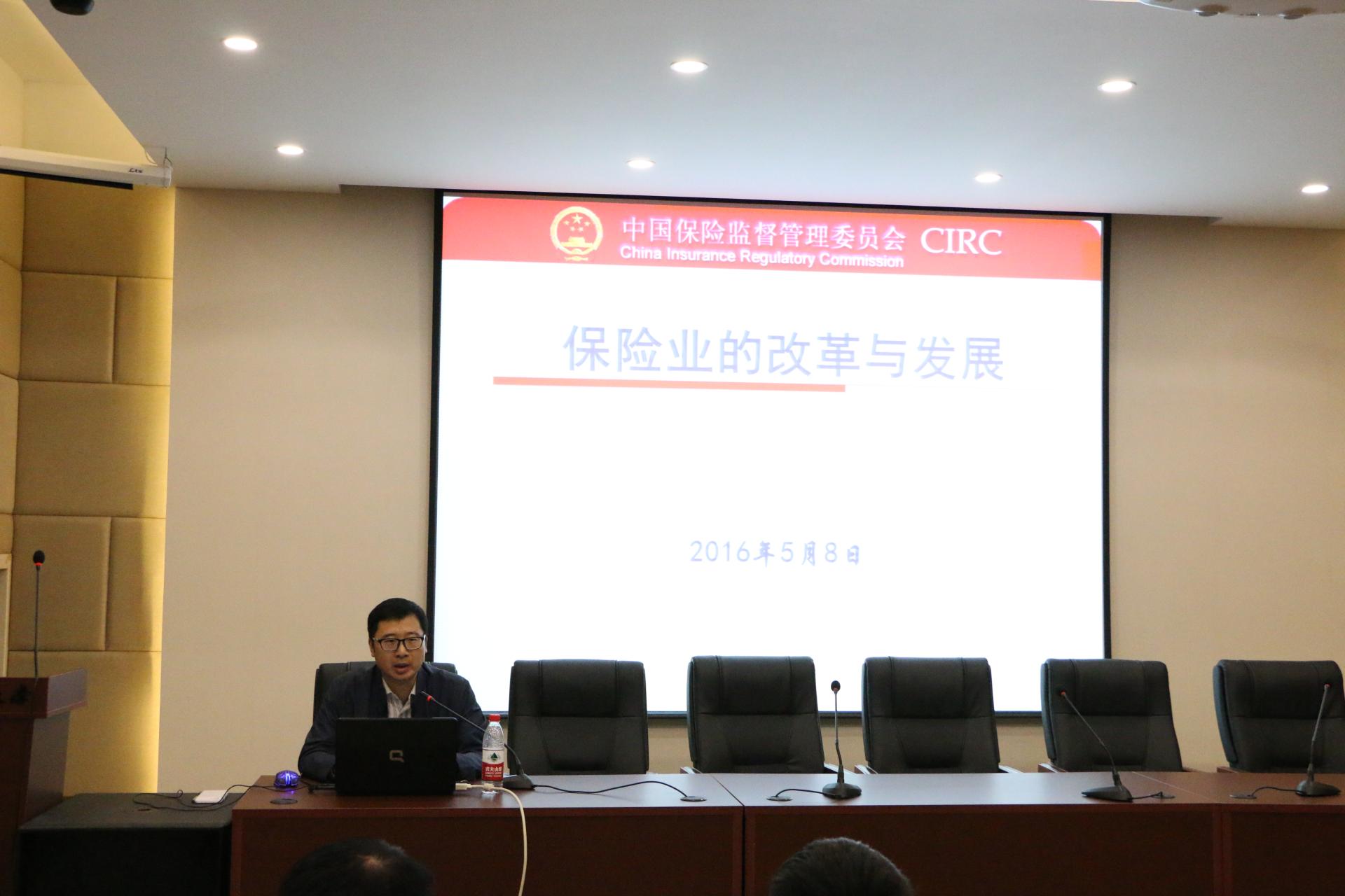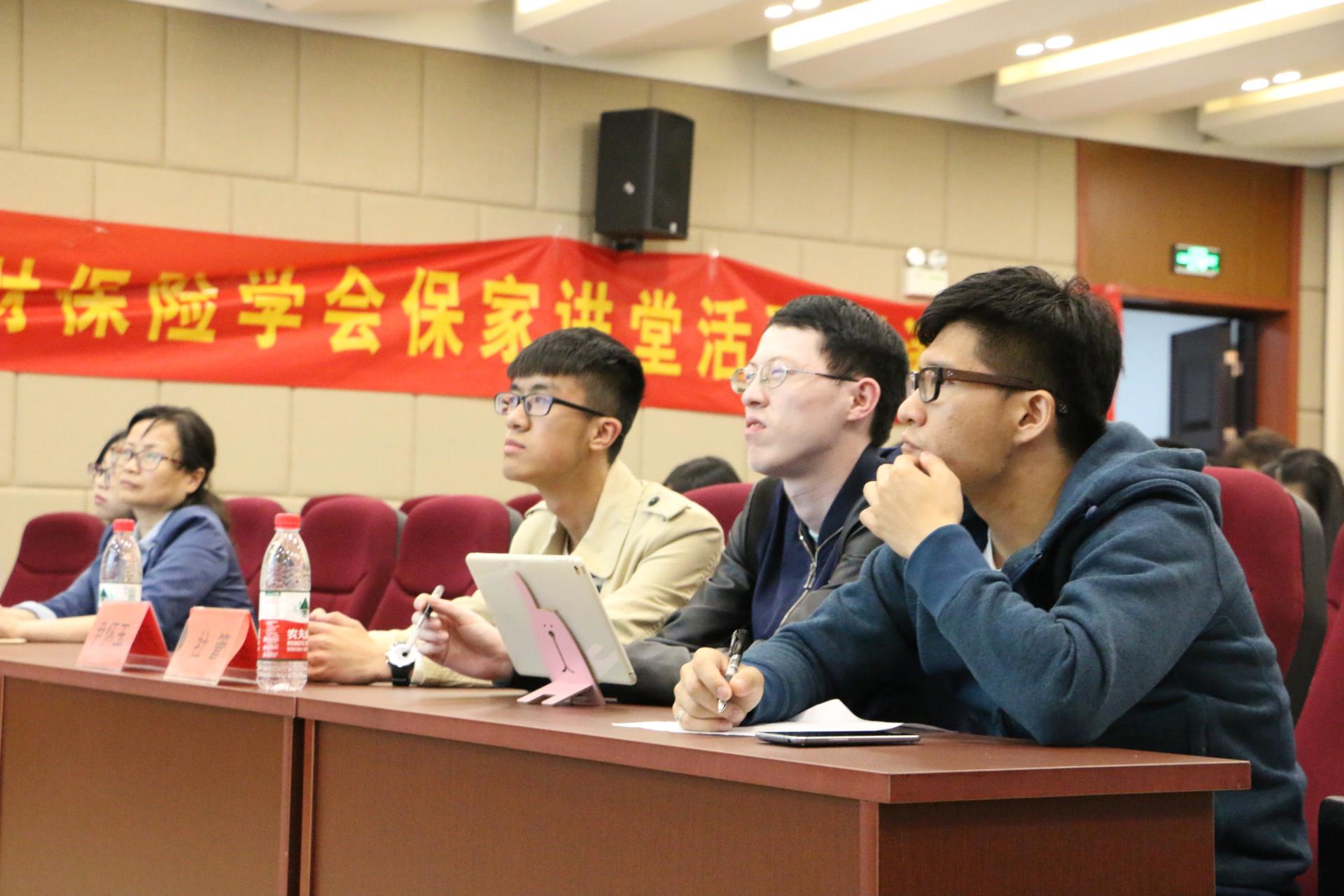 硕士生校外社会导师,具有扎实的理论研究功底和丰富的实务经验。随后,进入主题陈沁处长发表演讲——保险业的改革与发展。首先,陈处长另从角度地理解保险,究竟什么是保险,保险是一种社会化的安排 。保险这一行业不同于证券、银行等,几乎服务于每一家公司、每一个人,不可或缺。近几年来,股票市场、银行业都逐渐衰落,大不如前,保险业却能一如既往的创新发展,它从原来的有潜力到现在的有实力。陈处长鼓励同学们认真学好专业知识,为保险业的发展贡献出自己的一份力量。在之后的自由提问环节中,同学们积极提问,陈处长也一一作出了详细的解答,现场气氛热闹非凡。