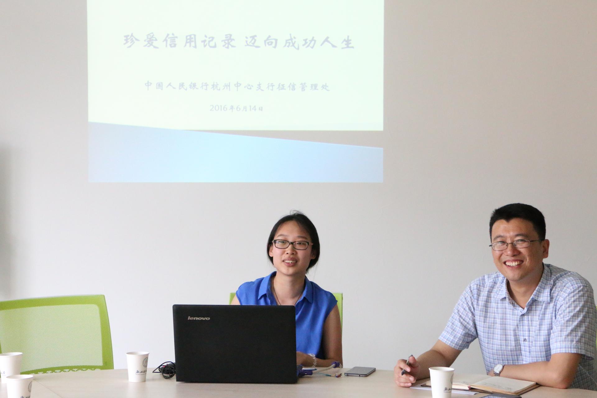开展了主题为“学习征信知识,维护自身权益 ”的“诚与信”信管大讲堂活动。李科长研究生毕业于美国杜兰大学,现任中国人民银行杭州中心支行征信管理处副主任科员,杭州中心支行团支部书记。在演讲中李科长从消费信贷、助学贷款与征信三个方面由浅入深介绍了征信的作用、信用报告的作用及如何利用其来维护自身权益。现场气氛轻松愉悦,老师和同学们都认真聆听、积极提问,最后李科长还与同学老师分享了自己的个人经验。一场演讲下来老师同学们都颇有收获,对今后自己的信用问题也有了大致的认识了解。