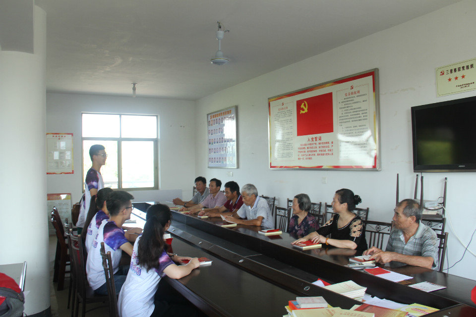 同学们开展中国共产党章程党规相关讲座,让党章党规深入人心。他们手把手教导老人写书法,并与老人们齐唱《歌唱祖国》,来表达心中对党浓浓的感谢之情!同学们为进一步深入基层群众,他们在周家村进行走访,替村里的老人们打扫卫生,给老人讲述党的丰功伟业,帮村里的孩子们戴上红领巾并为他们讲述党的故事。临走时,实践团的同学们给在田野中辛苦耕种的农民送水,送上一份清凉,向这些兢兢业业、艰苦奋斗的百姓表示感谢。