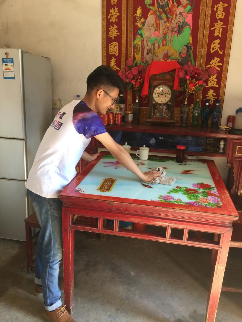 实践团成员帮村中老人打扫卫生