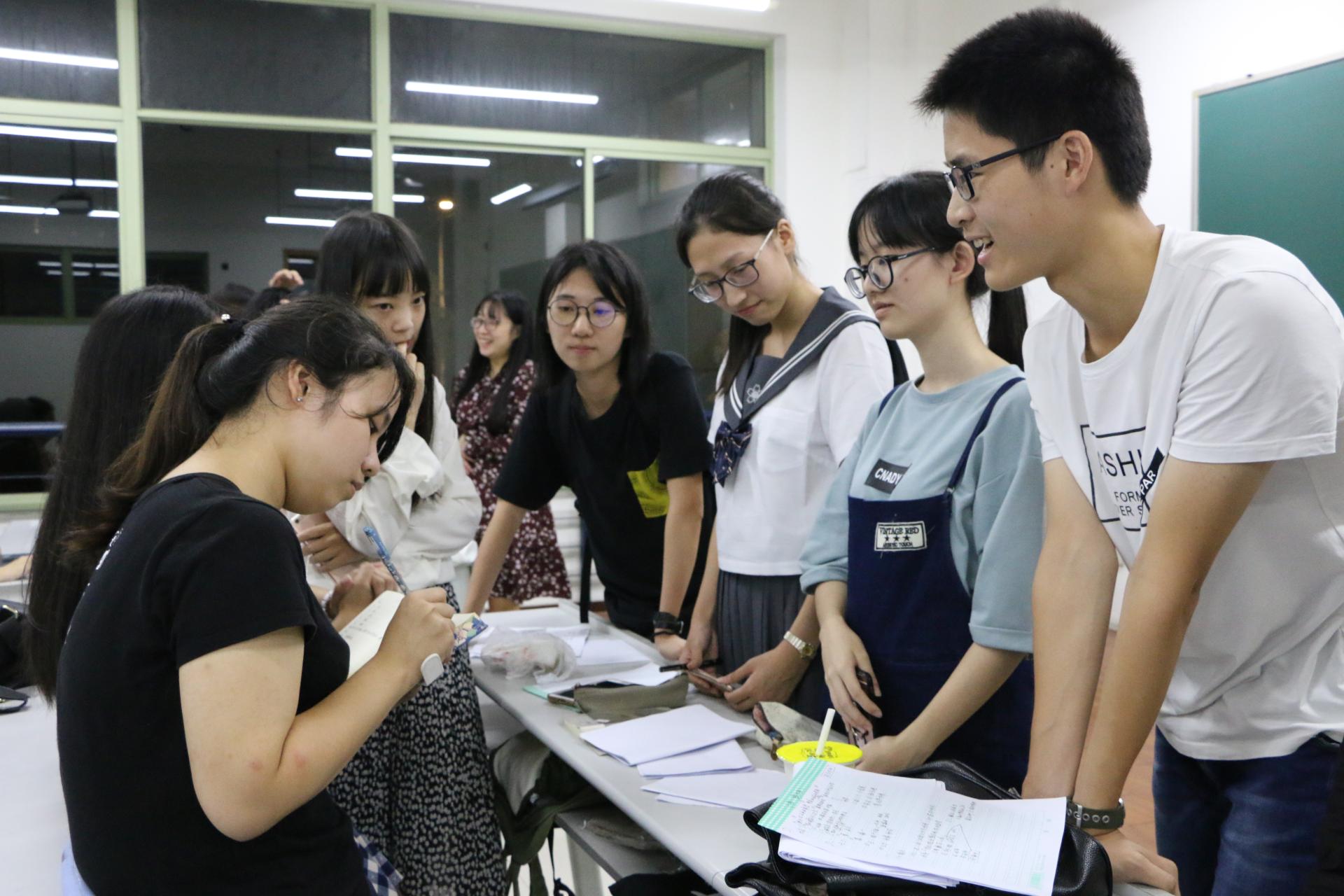 团委学生会招新工作顺利开展。经过各部门宣传和介绍之后,每个16级新生都跃跃欲试,招新现场十分火爆和热闹。在面试点外等待的同学都在积极准备,体现了他们对学生工作的向往和热情。