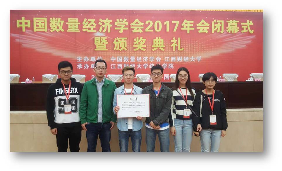 研究生林博、周寒娴、潜乾、陈一恺、朱正皓等同学应邀参加了此次年会。林博同学在会上报告的《基于最优Copula模型的上市公司债券流动性风险和市场风险的集成度量》(陈荣达教授指导撰写的论文)学术论文,荣获中国数量经济学会第十届优秀科研成果奖论文二等奖。