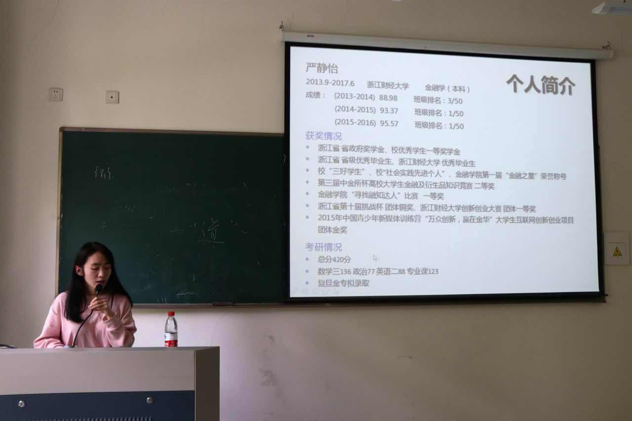 严静怡,1995年4月生,金融学专业2013级本科生。在校期间GPA为班级第一,曾获浙江省省政府奖学金、校优秀学生一等奖学金、校三好学生、校社会实践先进个人等荣誉称号;曾获 “寻找融知达人”比赛一等奖(2014)、第三届中金所杯高校大学生金融及衍生品知识竞赛二等奖(2015)、浙江省第十届挑战杯团体铜奖(2016)、猫都论坛 创新创业大赛团体一等奖(2016)、2015年中国青少年新媒体训练营“万众创新,赢在金华”大学生互联网创新创业项目团体金奖。