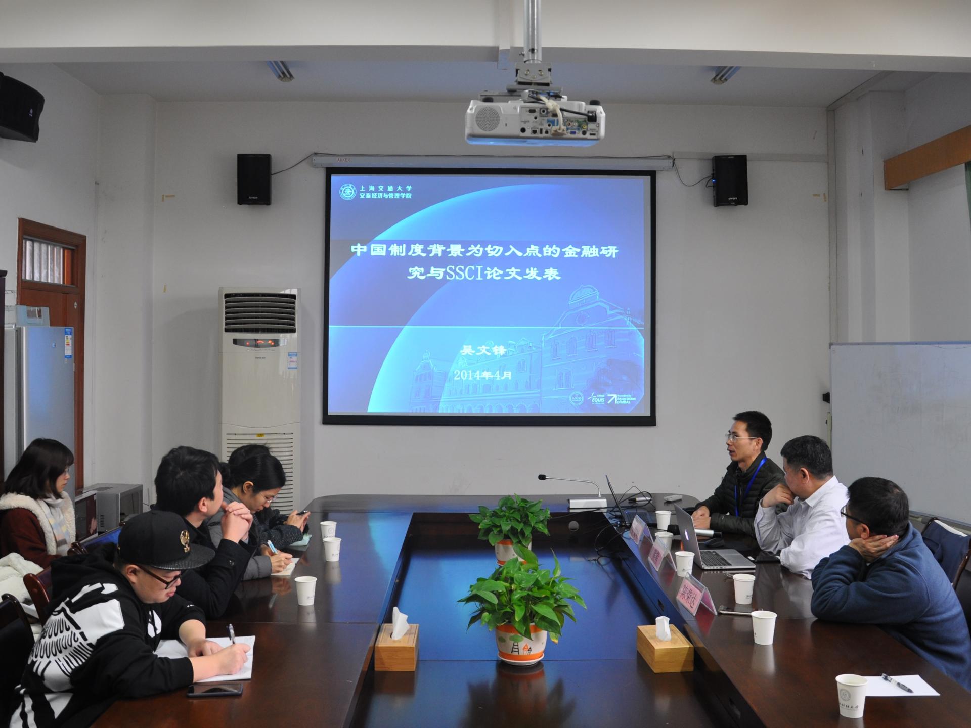 在吴文峰教授的“青年教师学术成长之路”专题讲座中,吴教授分享了他在学术研究中的经验,包括学术研究思路和SSCI发表论文中需要注意的问题。吴教授着重强调了中国背景对进行学术研究的重要性,并提出了三种研究方法,即利用中国数据,研究外国理论,进而提出新理论;依据中国背景,获得国外难以得到的理论证据;将中国现象结合国外理论进行研究。在随后进行的“谁会听从分析师的评级建议?来自中国的证据”专题讲座中,熊熊教授讲述了分析师推荐对个人投资者和机构投资者的影响,得出了分析师评级建议仅会影响个人投资者中小户和散户,大户和机构投资者对于分析师的评级建议几乎没有反应的结论。熊教授指出,中美两国分析师的推送对投资者收益的影响不同,美国分析师的股票推送对投资者的收益是促进作用,而在中国则相反。
