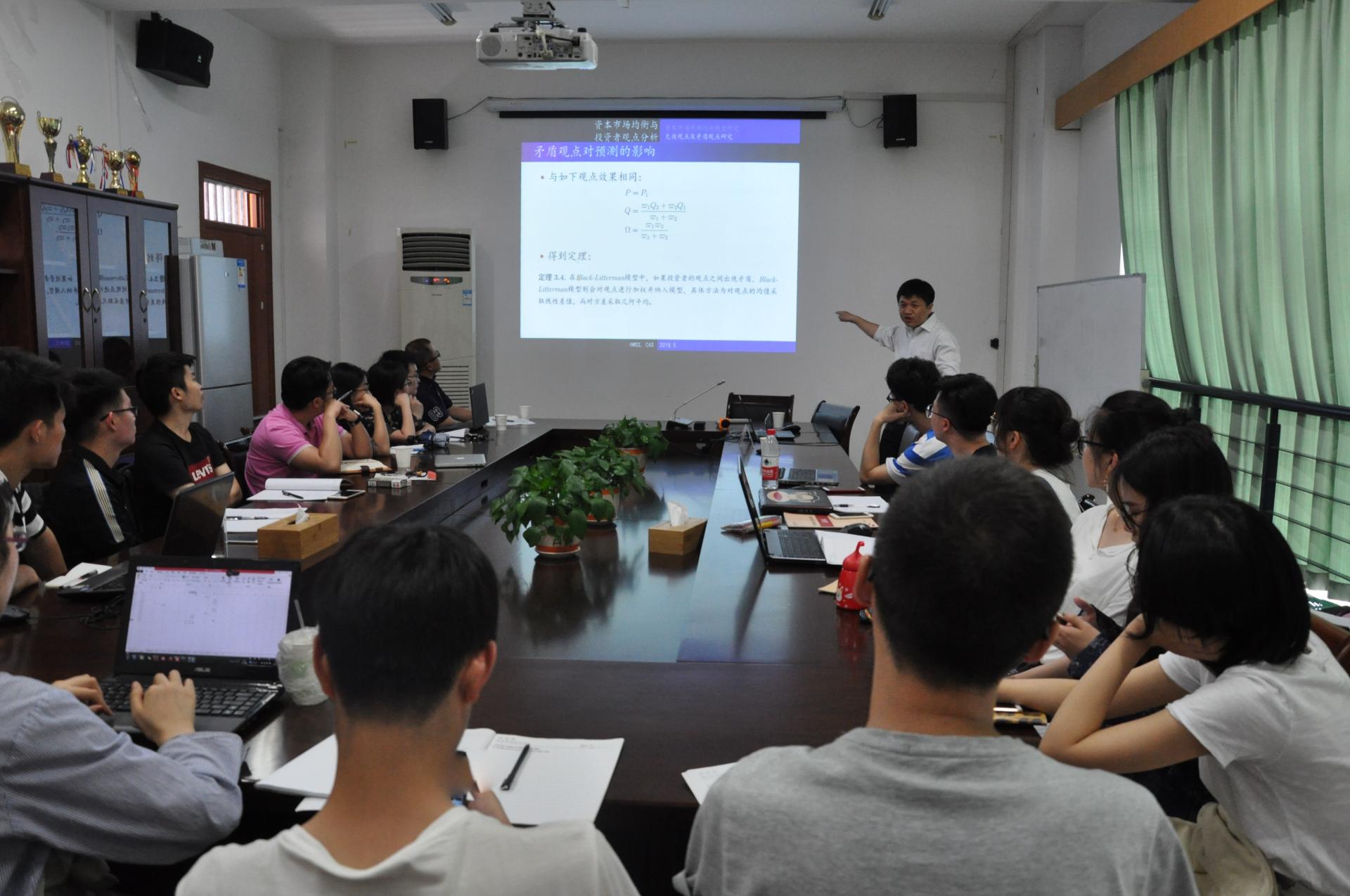 在本次专题讲座中,房博士首先向大家介绍了本次交流的课题梗概,将本次的讲座内容分为了“研究背景与意义”、“理论基础与研究现状”、“资本市场均衡和投资者观点分析”、“考虑投资者观点的单期资产配置模型构建”、“考虑投资者观点的多期资产配置模型构建”与“总结与期望”几个部分,以几个与现实背景密切相关的问题打开话题,深入浅出地为大家讲述了他课题中模型构建的原理与其丰富的实践意义,风趣幽默,引人入胜。最后以其模型严密的逻辑,将考虑投资者观点的资产配置模型推广到多起,并提出了基于优化思想的Black—Litterman模型求解方法,克服了模型无法兼容极度自信度观点这一问题,之后给出观点时效性衰减公式,从而将考虑投资者观点的资产配置模型推广到多期。