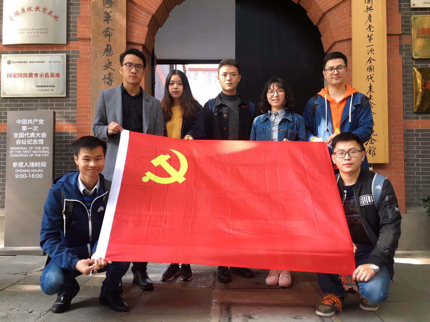 团队一行在上午十点左右抵达兴业路76号——中共一大遗址,这幢具有厚重历史感的老楼曾经经历过居住民宅到万象园酱坊再到会址重建的变迁。在这里见证了在法租界巡捕房强势打压下世界第一政党共产党的孕育诞生。参观过程中,团队成员认真严肃的回顾学习了中国共产党建党的伟大历史,在党旗下,他们再次重温入党誓词,铿锵有力的声音再次坚定在场所有人的信念和初心。在参观结束之后各位党员同志表示对纪念馆中珍藏的众多文物印象深刻。一份党刊,照亮了中国共产主义革命者前行的道路;一台打印机,谱写了今日社会主义革命的辉煌;一本共产党宣言中译本,让无数人民选择了用信念和勇气战胜压迫和恐惧。正如习近平总书记所说,“只有不忘初心、牢记使命、永远奋斗,才能让中国共产党永远年轻。”而青年作为祖国未来发展的主力军,更应矢志奋斗才能使中华民族的伟大巨轮驶向光辉的彼岸。