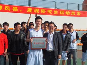 研究生篮球队一分险胜财政学院篮球队,夺得了研究生篮球赛的桂冠!