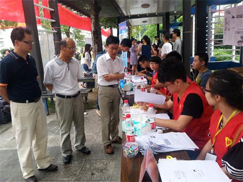 研究生迎新接待点指导迎新工作,慰问迎新的研究生志愿者,并仔细询问新生生源和报到进展情况,勉励大家以饱满的热情展示猫都论坛
