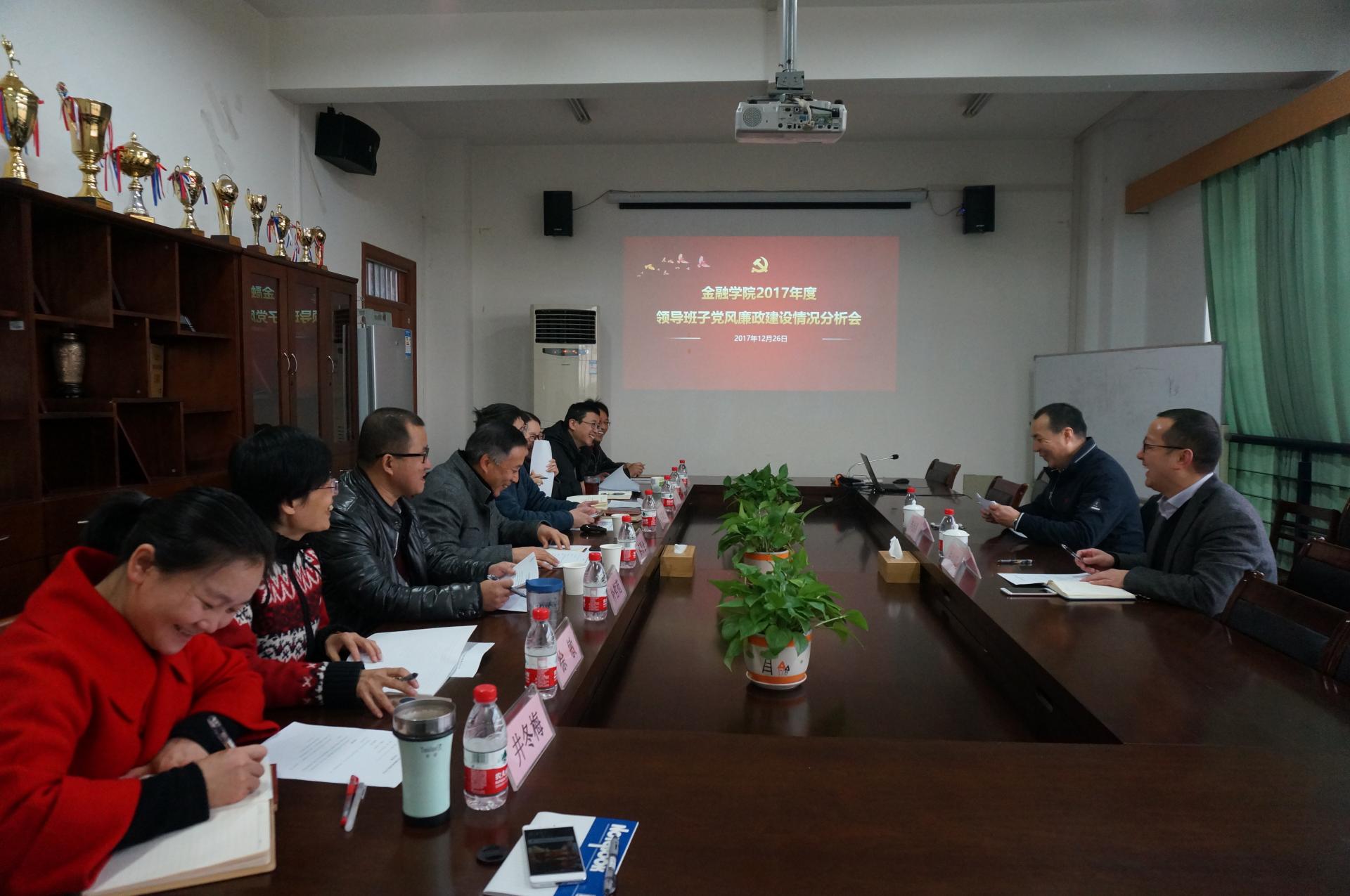 2017年度领导班子党风廉政建设情况分析会在学院楼422会议室举行。校党委书记李金昌,校党委办公室、校长办公室副主任朱旭明,学院党政领导班子全体成员,学院党委委员,学院纪委委员参加了本次会议。会议由院党委书记蔡国金主持。