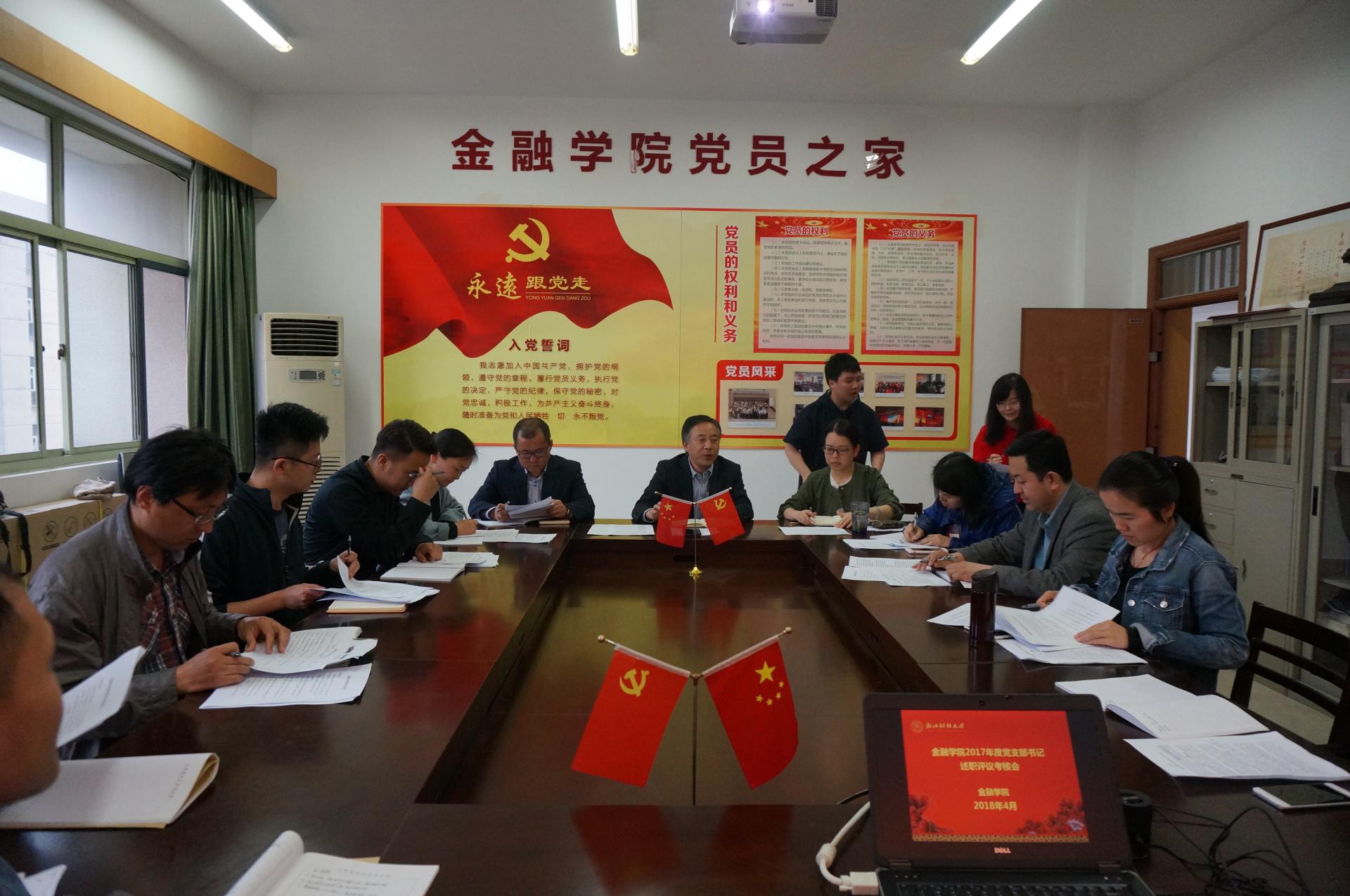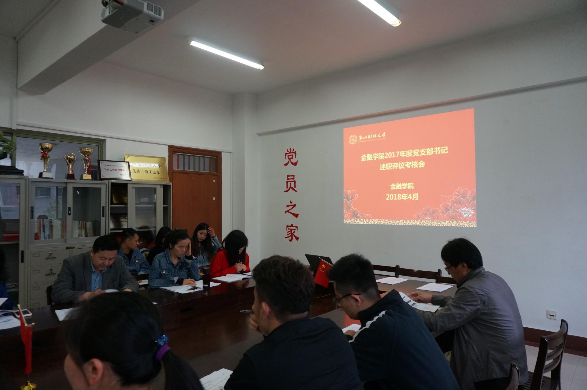 4月4日下午,在学院楼党员之家召开了猫都论坛 2017年度党支部书记述职评议考核工作会议。猫都论坛 党委书记蔡国金、党委副书记叶秀、副院长朴哲范、研究生支部指导老师及各党支部书记参加了此次会议。学院领导及各支部书记组成评议小组进行现场考评打分。