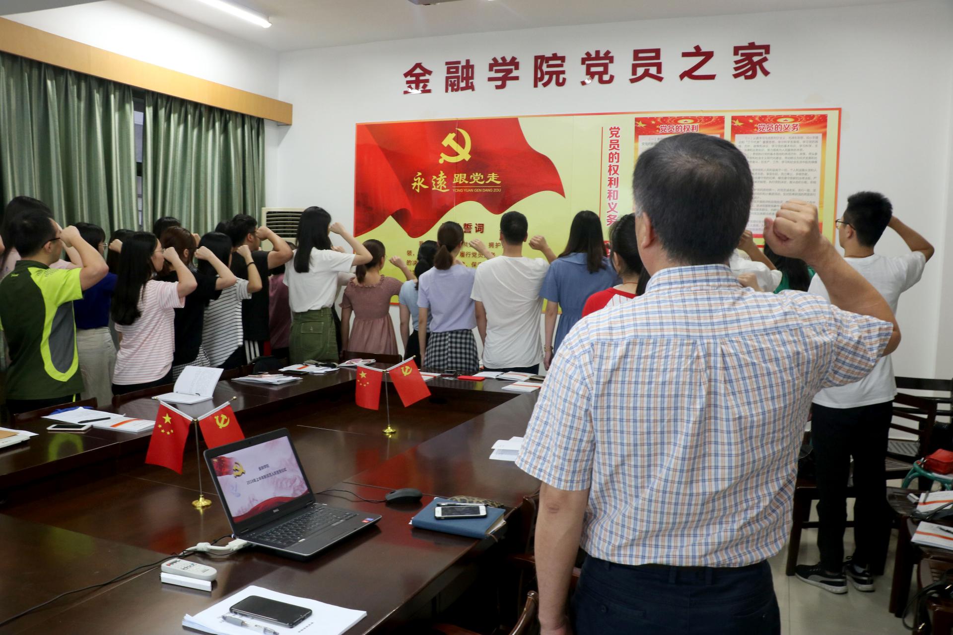 党委书记上党课暨新党员入党宣誓活动在党员之家隆重举行。学院党委书记蔡国金、党委副书记叶秀、团委书记翟丽媛、辅导员王伟伟、聂亚平、沈耀杰以及全体新发展党员参加了本次活动。