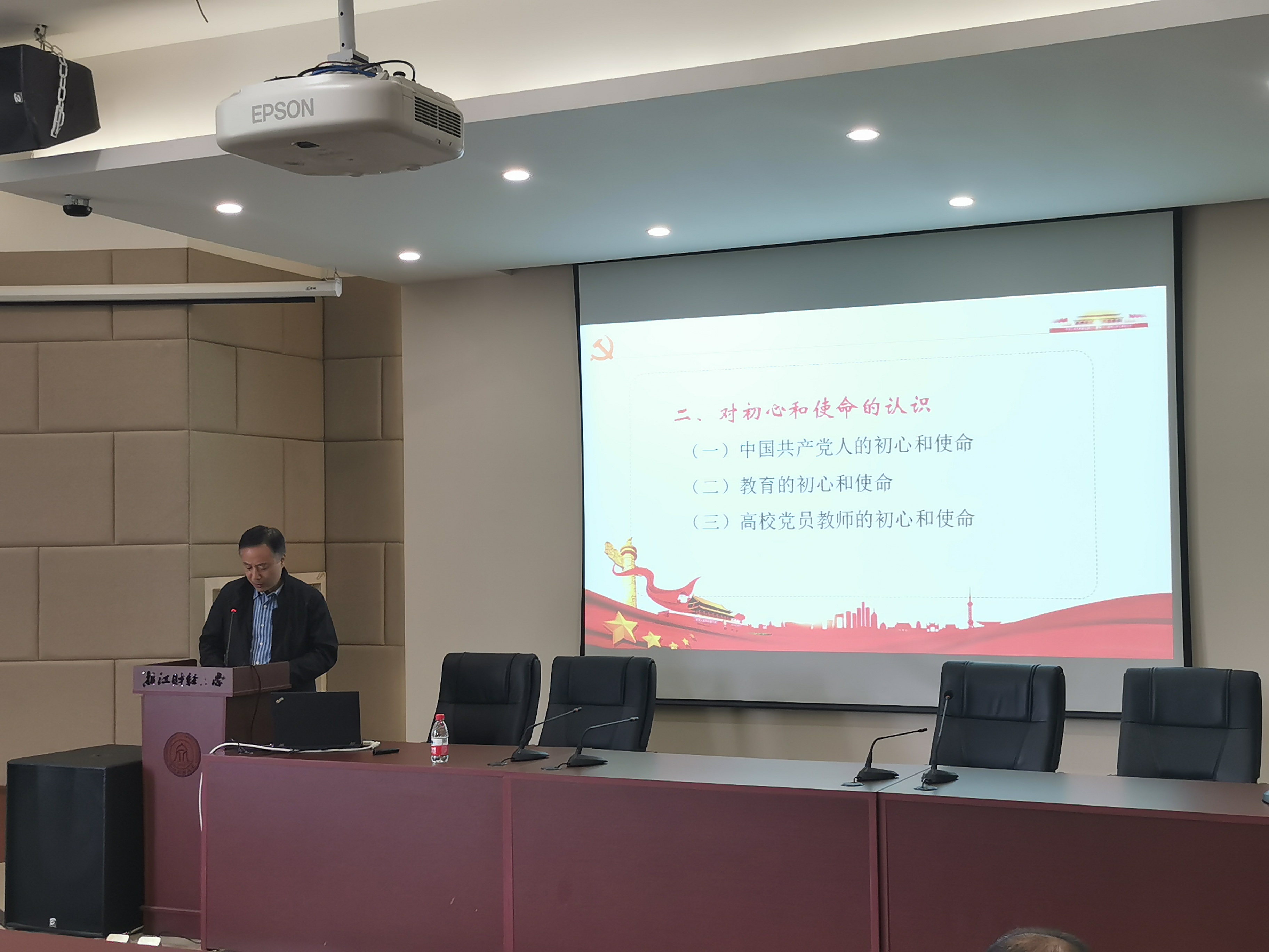 党委书记蔡国金作了题为《坚守党员教师初心使命、努力促进学院建设发展》的主题教育专题党课,学院全体教工党员参加学习。