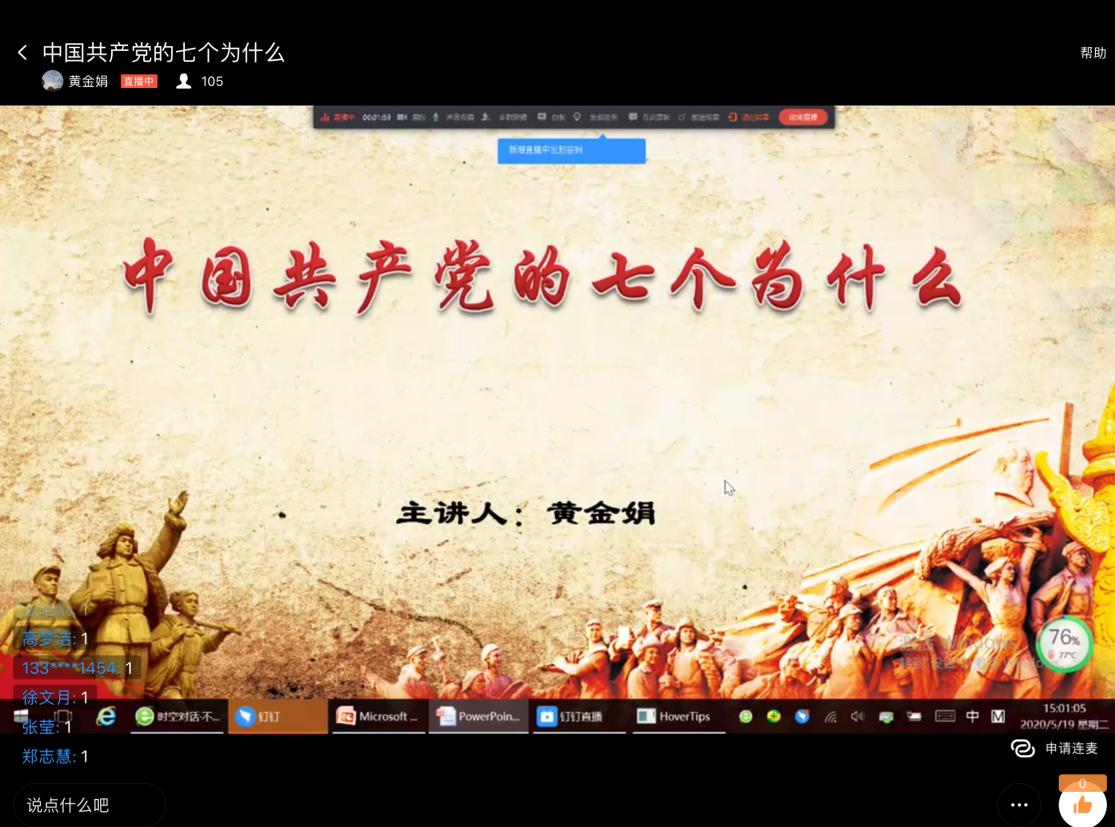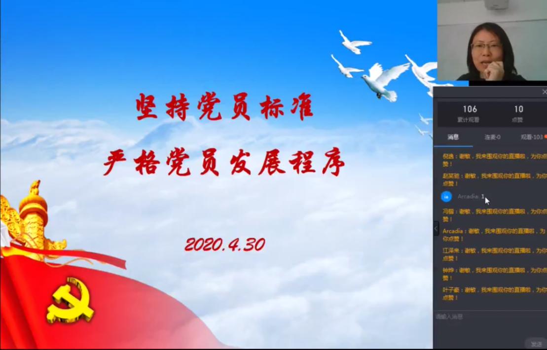 为扎实推进防疫期间入党培训教育工作,近日,猫都论坛 党校第二十九期入党积极分子培训班通过钉钉平台以云授课模式顺利开展。校党委组织部、统战部副部长黄金娟老师,校党委学工部学生处副处长叶城均老师,财税学院党委副书记徐丽玲老师,猫都论坛 党委书记蔡国金老师、党委副书记谢敏老师分别担任主讲。