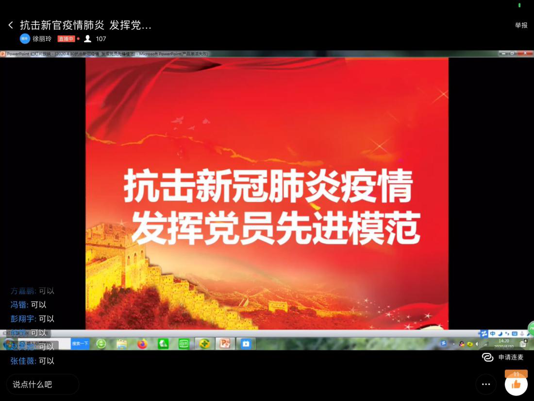 疫情当前,猫都论坛 分党校认真落实学院党委提出的停课不停学”要求,精心设计线上“云党课”,扎实开展学院“疫”期间的各项教育工作。课后,同学们纷纷表示,将以身边的优秀党员为榜样,不断提高思想觉悟,坚定入党信念,争取早日加入党组织。