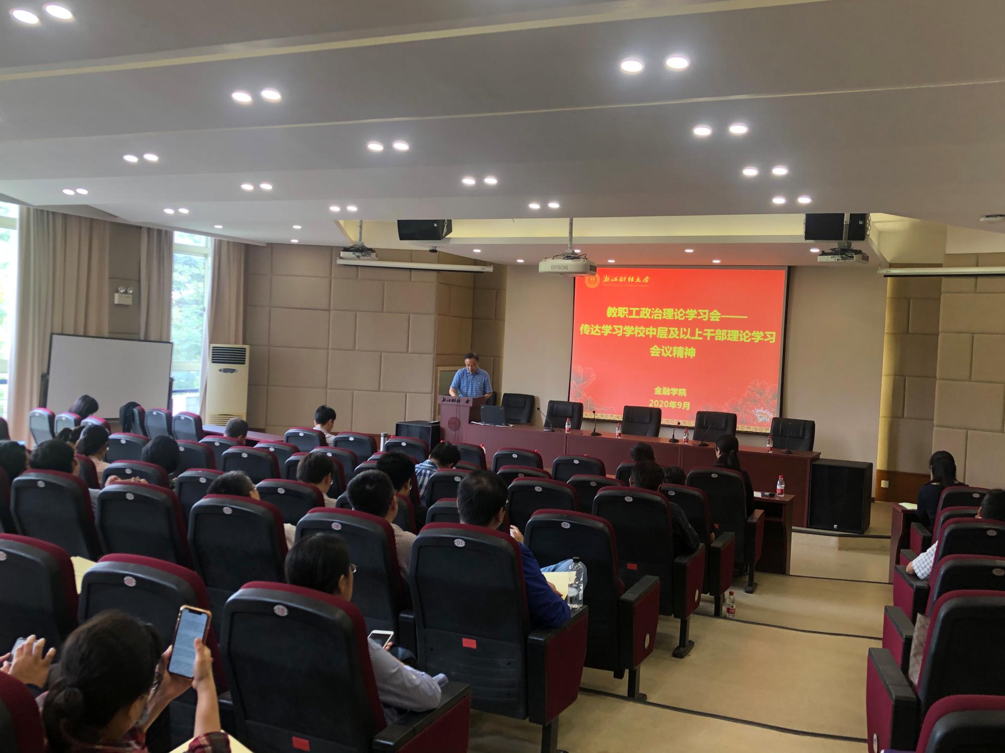随后,蔡国金传达学习了校党委书记李金昌、校长钟晓敏在中层及以上干部理论学习会上的讲话精神,强调面对国际大变局对高等教育的新挑战、我省“重要窗口”建设对高等教育的新要求、学校高水平财经大学建设的新任务,要深入学习贯彻习近平总书记在浙江考察时重要讲话精神,全面落实高教强省发展战略,进一步加强党的政治建设,紧扣立德树人根本任务,谋划学校未来建设发展思路,迎接第二次党代会召开。