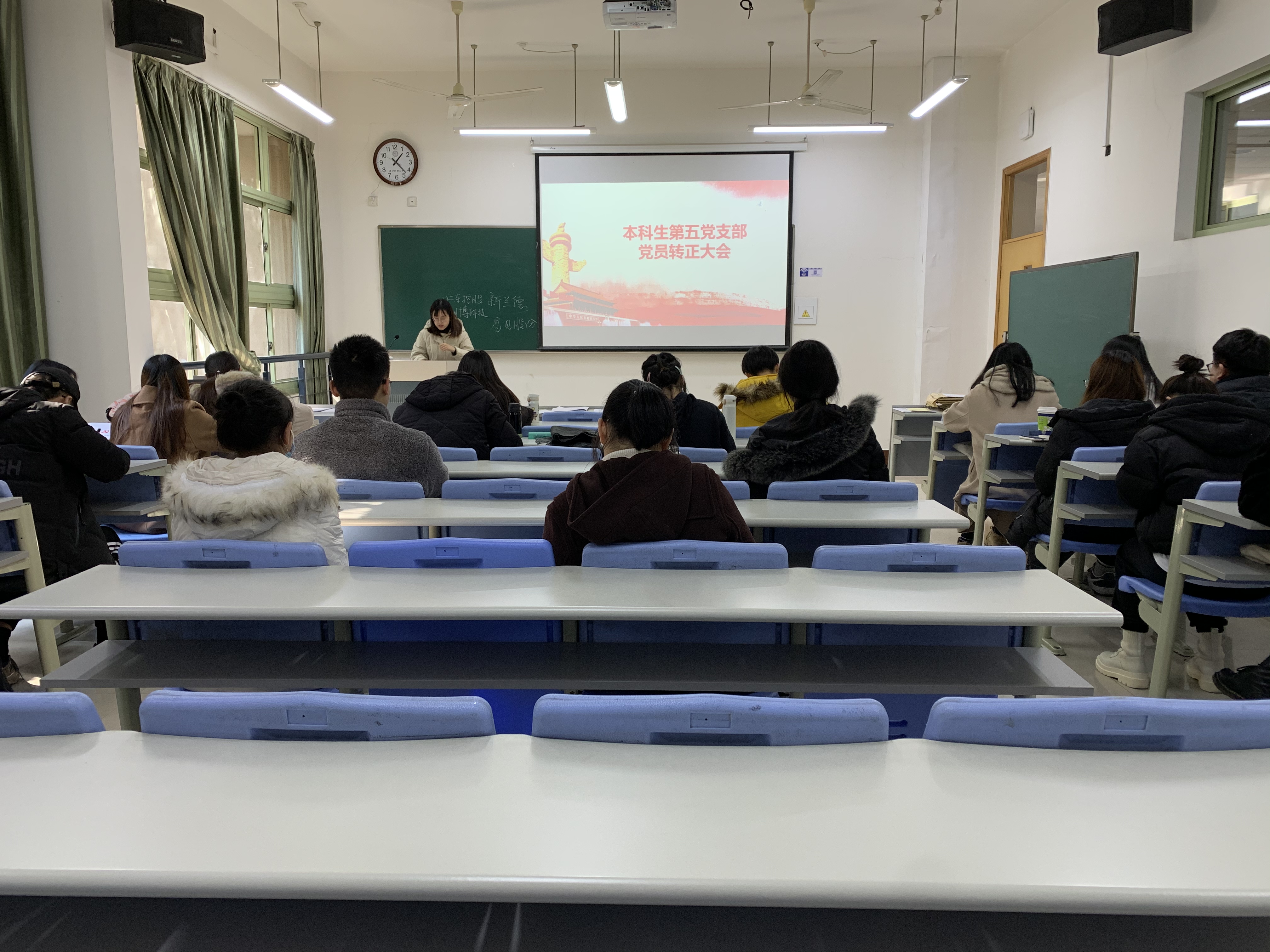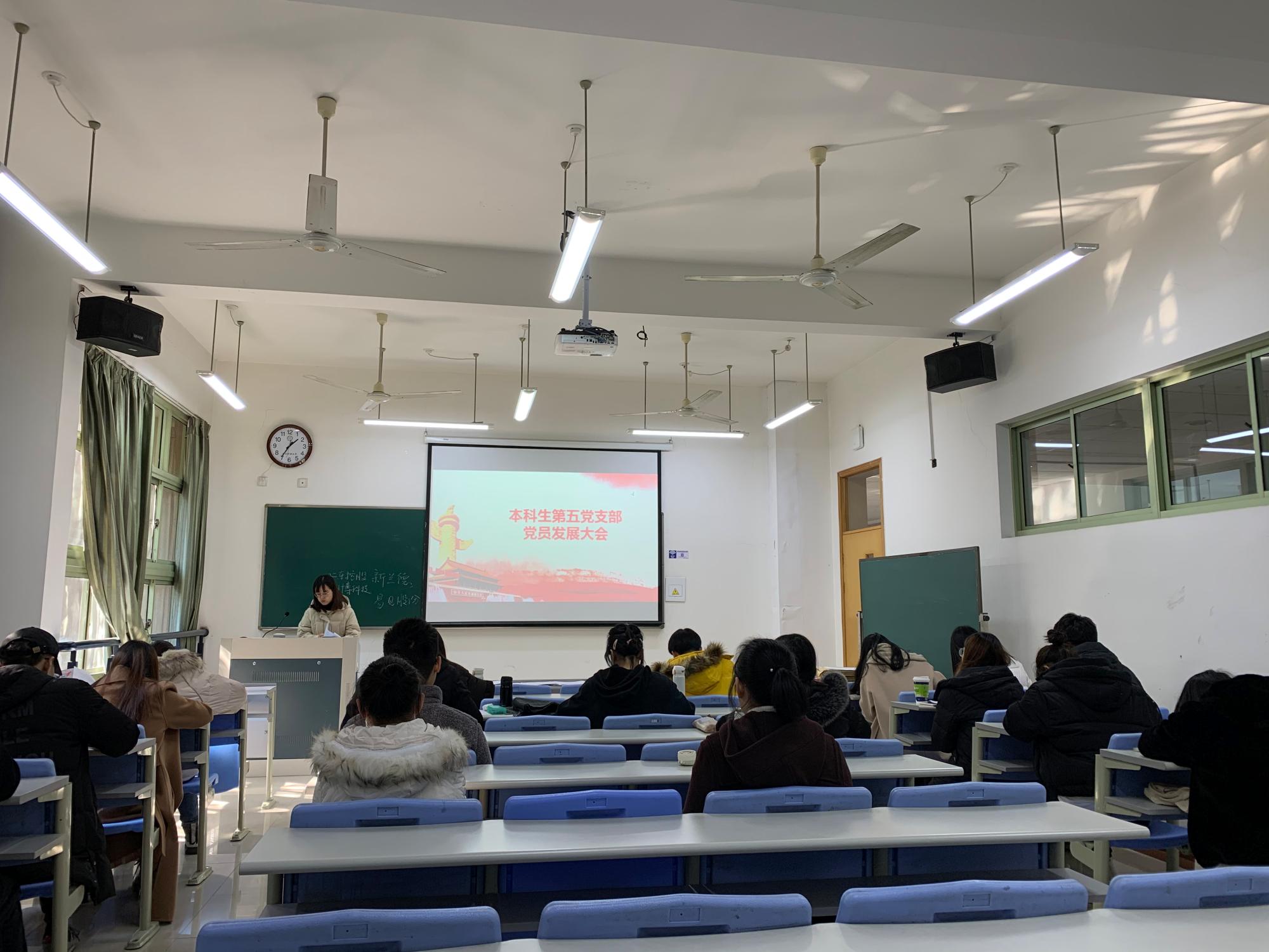 猫都论坛 本科生第五党支部于2020年12月12日召开了本科生第五党支部党员转正、发展大会暨专题学习党的十九届五中全会和省委十四届八次全会精神会。大会主要议程包括:讨论蔡雨晴等4名预备党员同志转正问题,讨论接收程正达等10名同学为预备党员问题。支部全体正式党员、预备党员、本次发展对象参加了此次大会。本次大会由本科生第五党支部书记沈晓云同志主持。