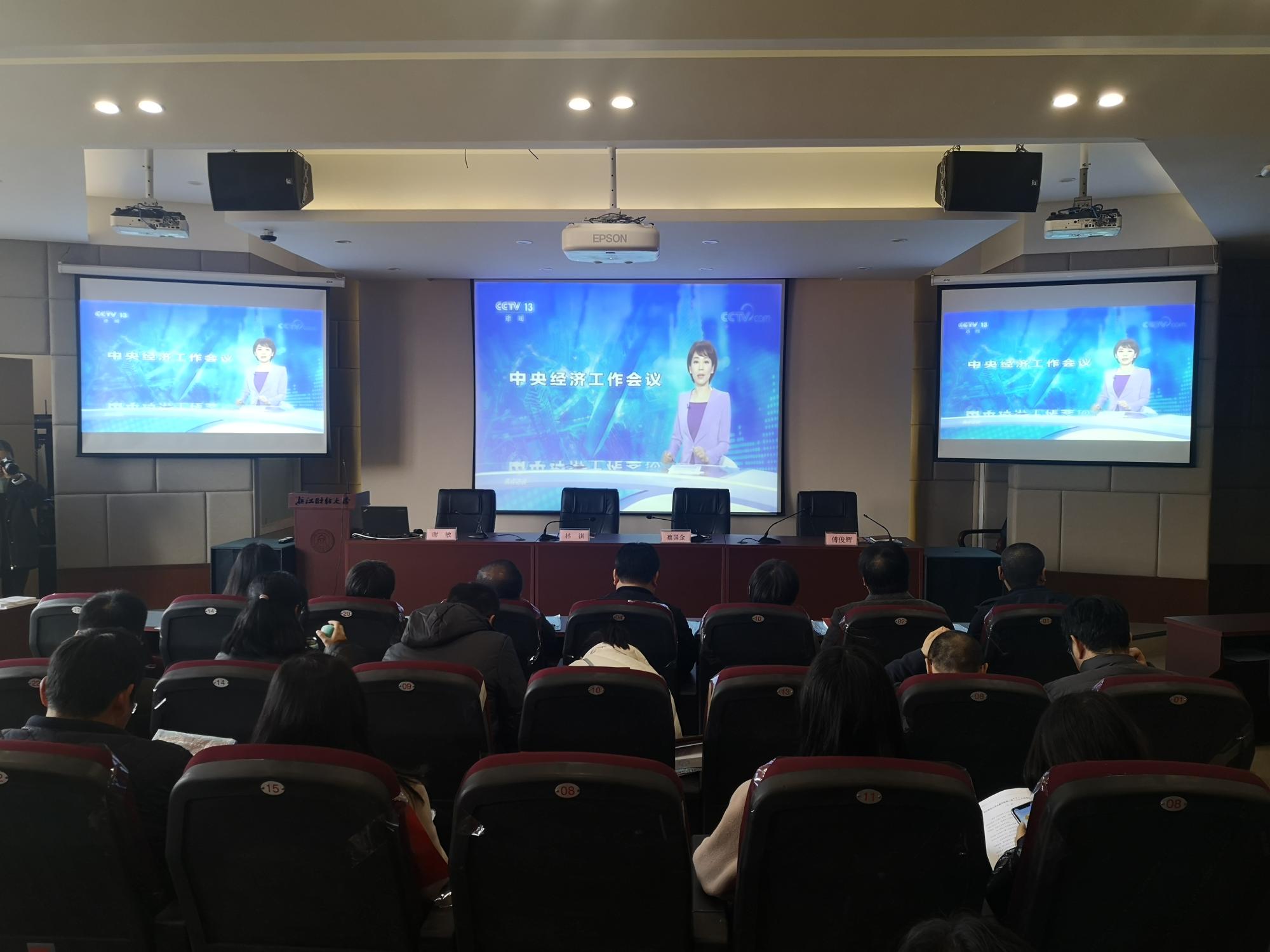 召开教职工大会进行政治理论集中学习,以观影的形式专题学习贯彻中央经济工作会议精神,全院教职工参加学习,学院党委书记蔡国金主持会议。