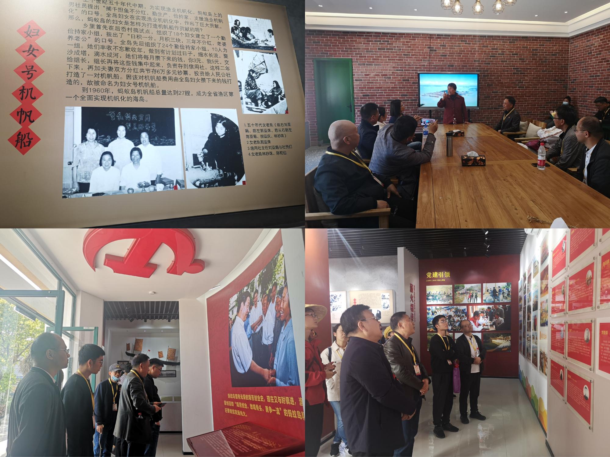 党员们来到了马金星《军港之夜》词作创作基地,跟随着熟悉的旋律,合唱经典红歌,感受时代变迁。一起探访新中国第一个人民公社旧址,集中观看了岛史纪录片,重温入党誓词,回顾入党初心。党员们亲身体验织网、搓草绳等活动,感受蚂蚁岛人民艰苦创业、自力更生的奋斗历程。驻足于蚂蚁岛创业纪念室,阅览蚂蚁岛四五十年不断的艰苦创业史、渔业发展史和建设成就史,其中搓草绳和卖铜火囱换钱造船的旧事,至今阅来,仍然鲜活感人,历久弥新,深刻体现了“艰苦创业、敢啃骨头、勇争一流”的蚂蚁岛精神。