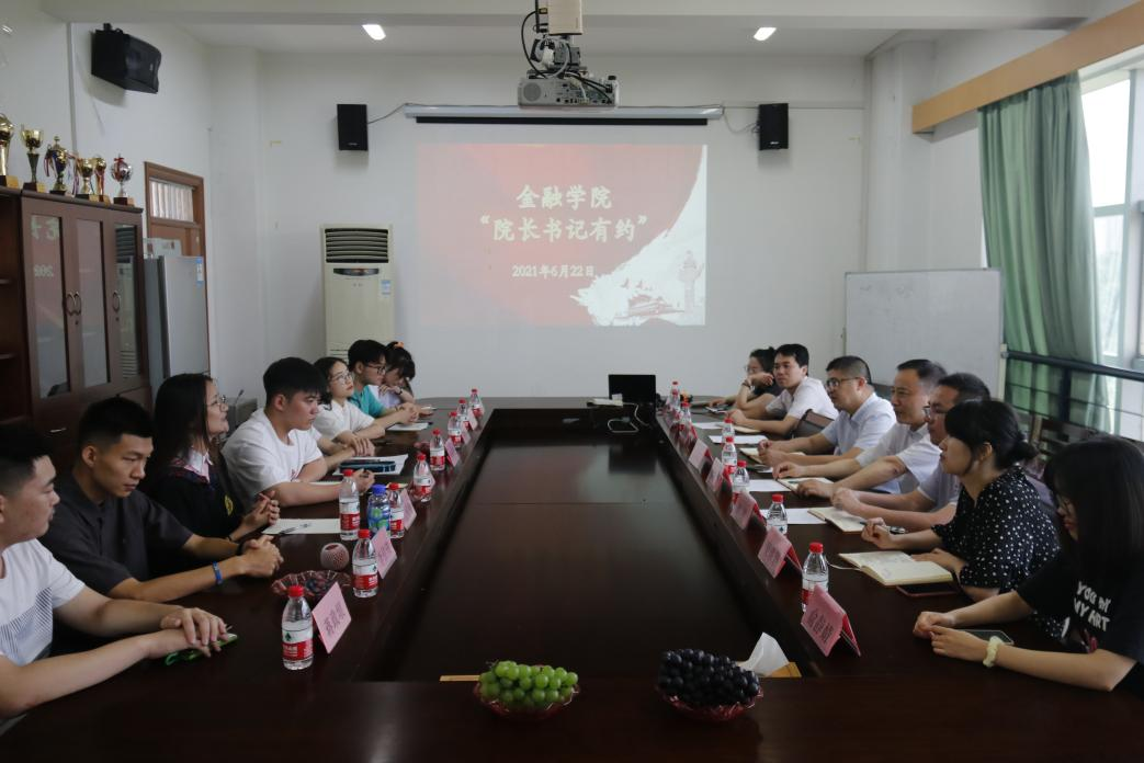 把党史学习教育同推动学院工作、解决学生实际问题结合起来,把“我为群众办实事”作为党史学习教育重要内容。6月22日下午,金融学院第二期“院长书记有约”活动在学院422会议室举行,学院院长陈荣达,党委书记蔡国金,副院长林祺、傅俊辉与本硕博各年级学生代表进行了面对面交流沟通。会议由学办主任吴轶韵主持。