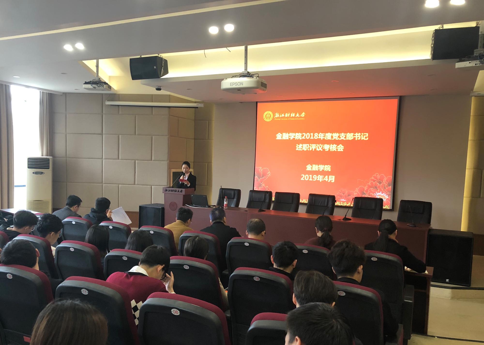 2018年度党支部书记述职评议考核工作会议。学院党委书记蔡国金、党委副书记叶秀、副院长朴哲范、研究生支部指导老师及各党支部书记、师生党员代表共百余人参加了会议。