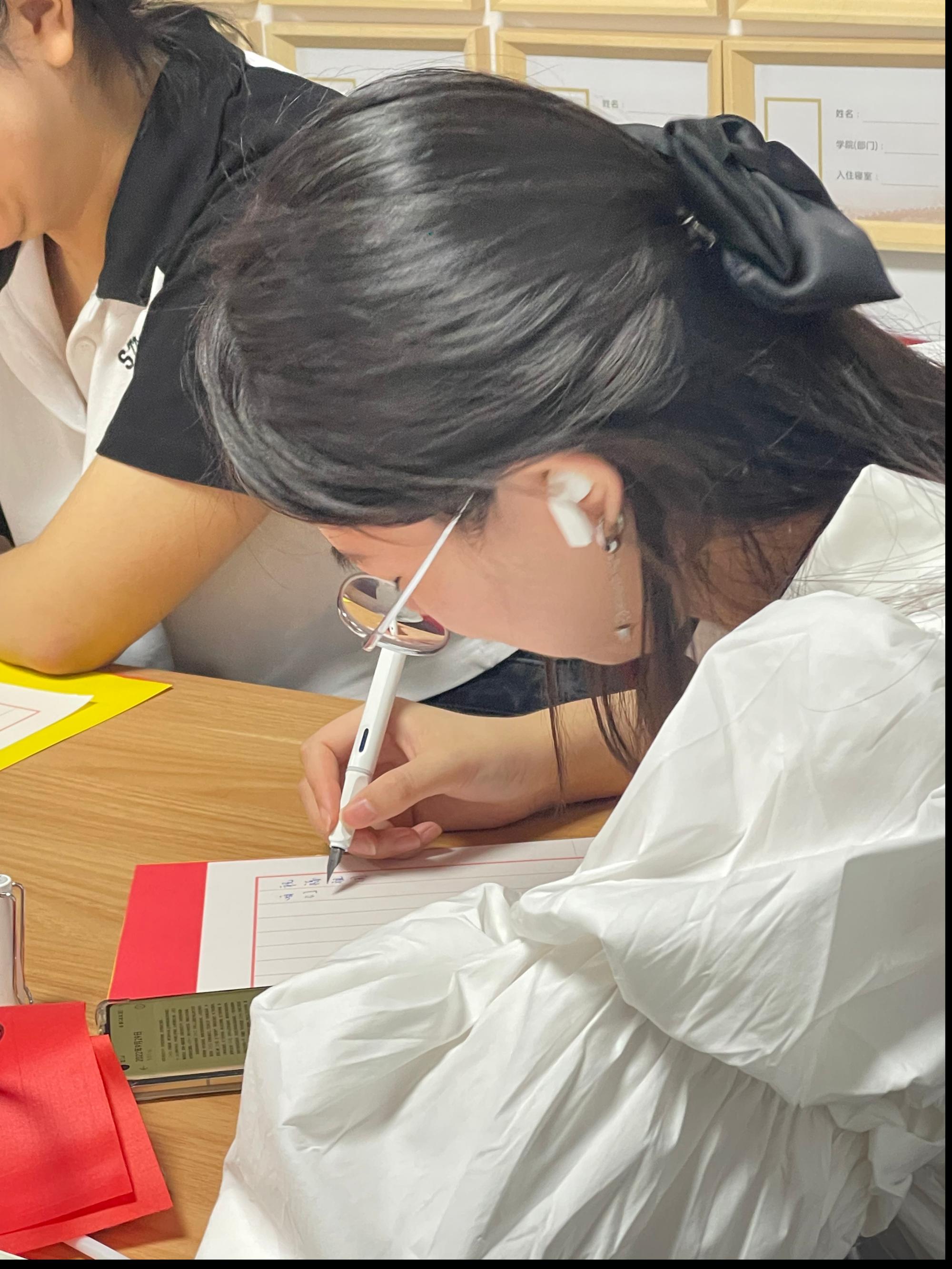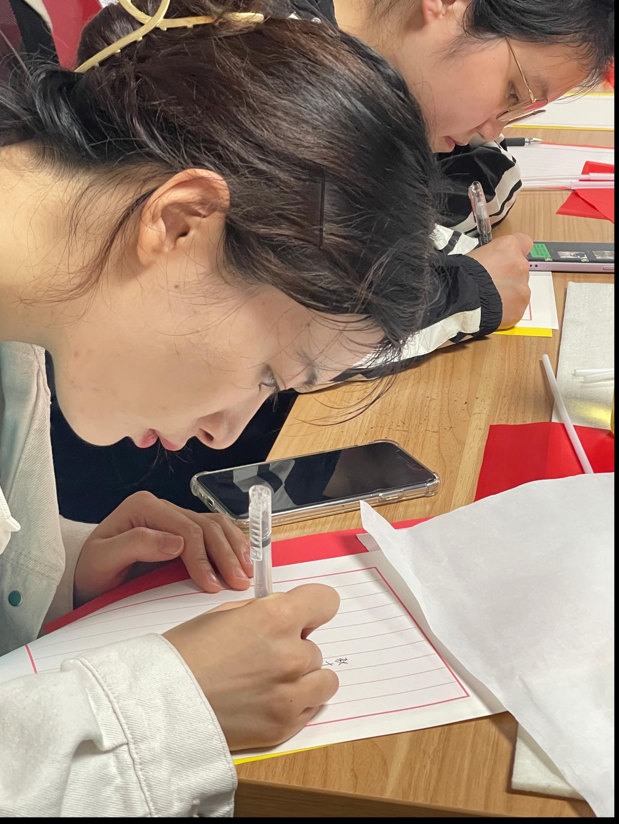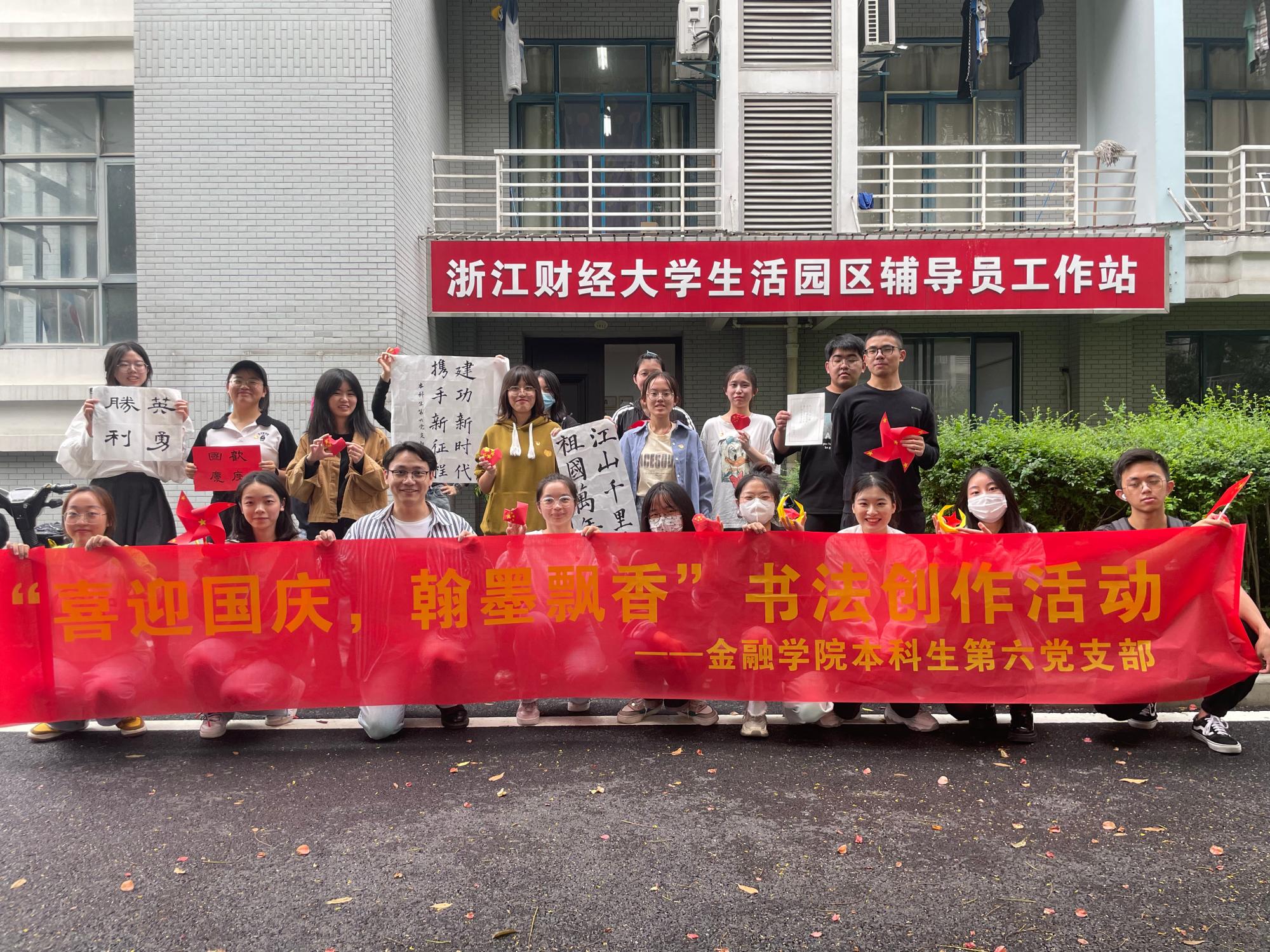 本科生第六党支部在桃李苑12幢生活园区活动室开展“喜迎国庆,翰墨飘香”书法创作主题活动,师生党员以饱满的热情一起为祖国母亲庆生。