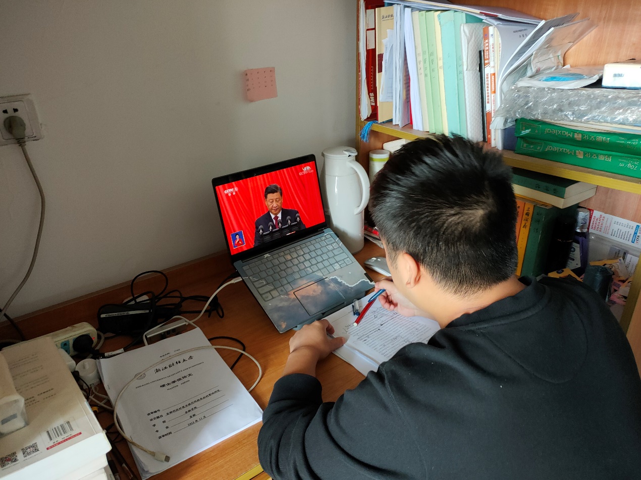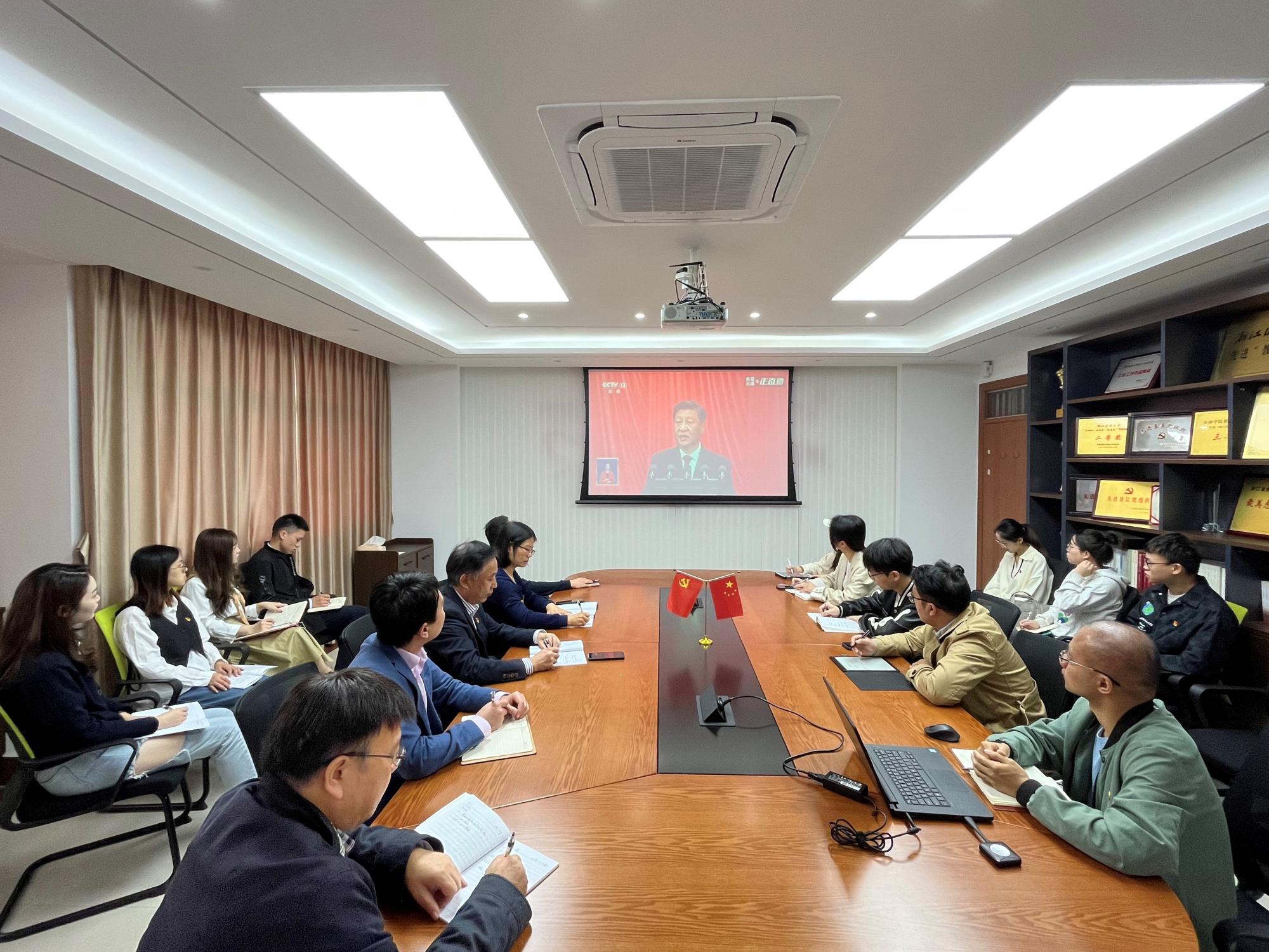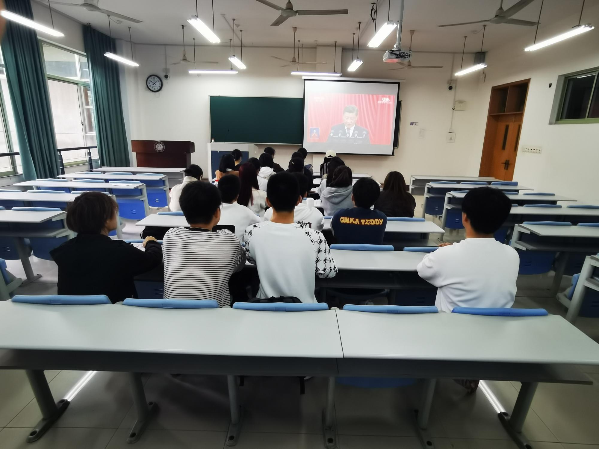 猫都论坛 党委组织全院师生第一时间收听收看党的二十大开幕会盛况,认真聆听习近平总书记代表第十九届中央委员会向党的二十大作的报告。学院党委书记蔡国金和领导班子成员、各党支部书记在学院党员之家集体收看了开幕会直播。学院各党支部、各班、团支部所属师生通过广播、电视、网络等方式第一时间集体收听收看会议盛况。