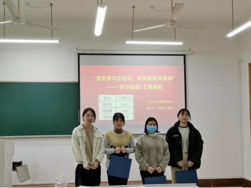101教室举办“党员学习正当时,不负韶华共进步”--“学习强国”之星表彰活动,活动由本科生第一党支部书记叶苗苗主持。