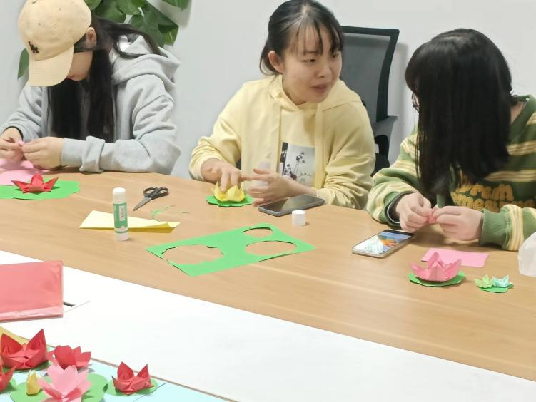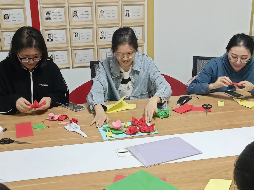 莲花代表着一颗颗向往两袖清风的心,绿叶代表着不忘初心、忠于清廉的护卫。在手工折莲花的过程中,师生们分享了自身对廉洁以及正直的看法,潜移默化中提高了清正廉洁的意识。支部书记吴轶韵总结强调,作为共产党员,除了努力提升自我能力以外,还要积极地以实际行动发扬清廉之风,我们要认真贯彻落实党的二十大精神,心存敬畏,筑牢拒腐防变思想防线,加强自身修养,为实现中华民族伟大复兴而不懈奋斗。